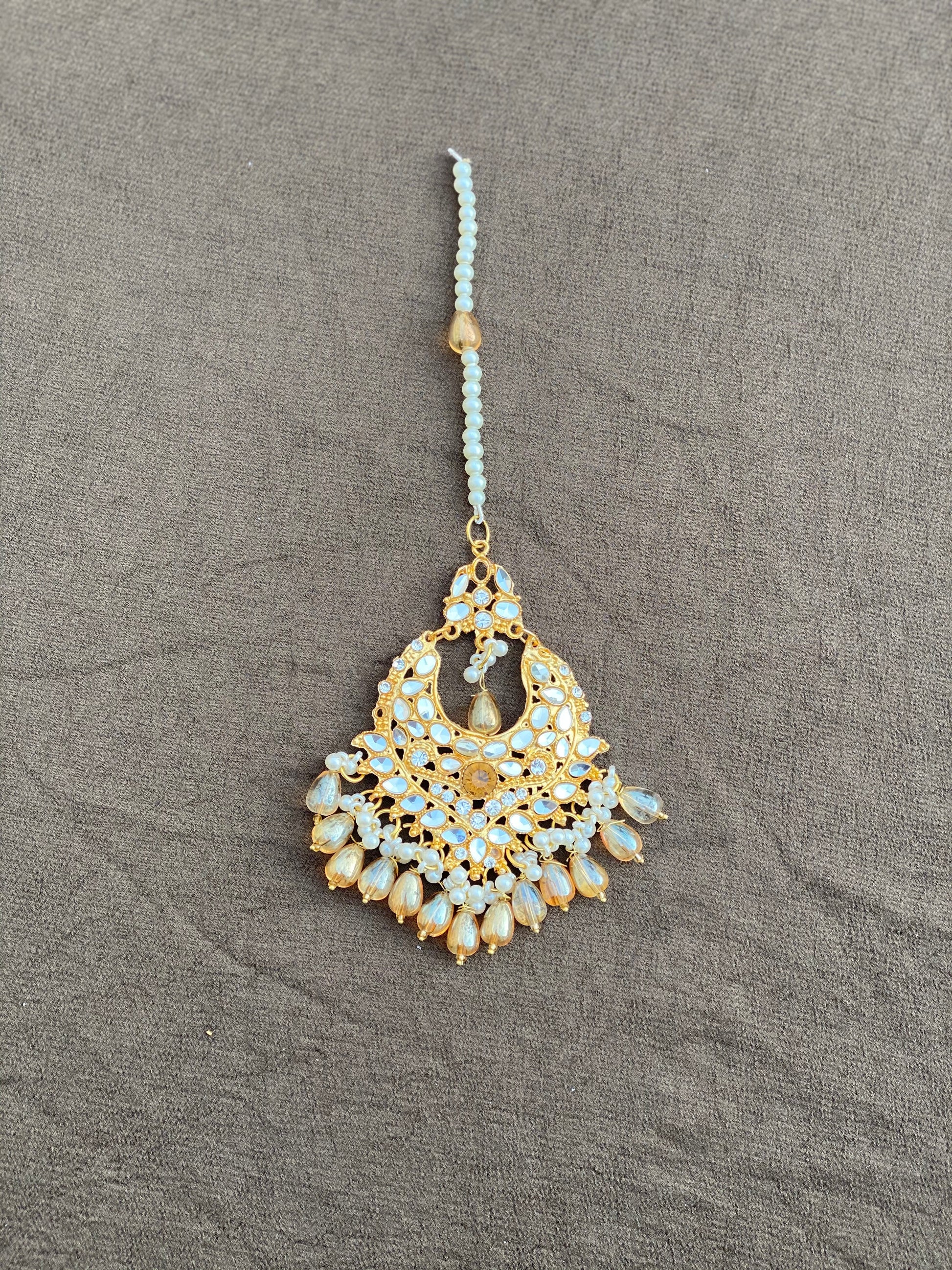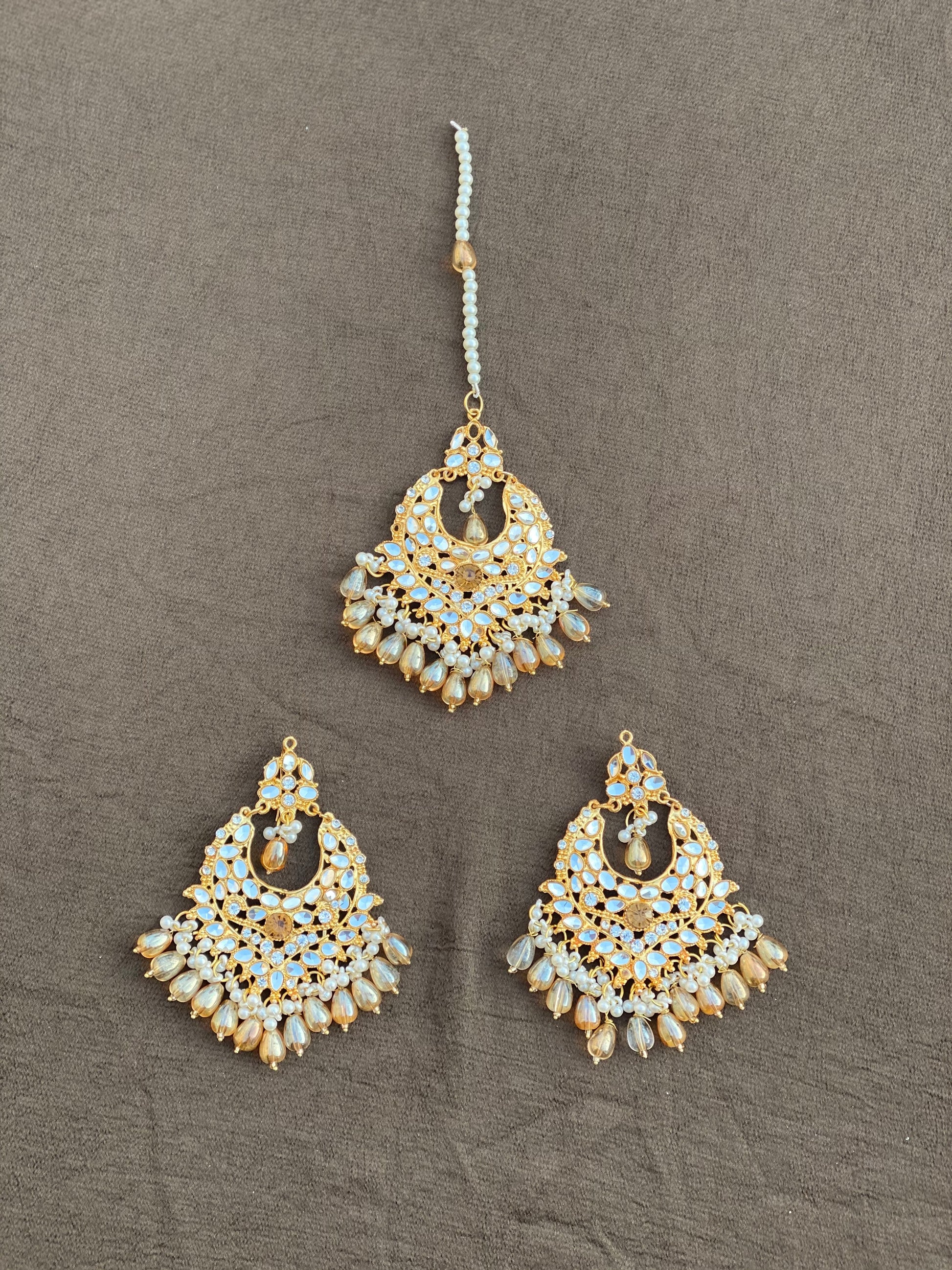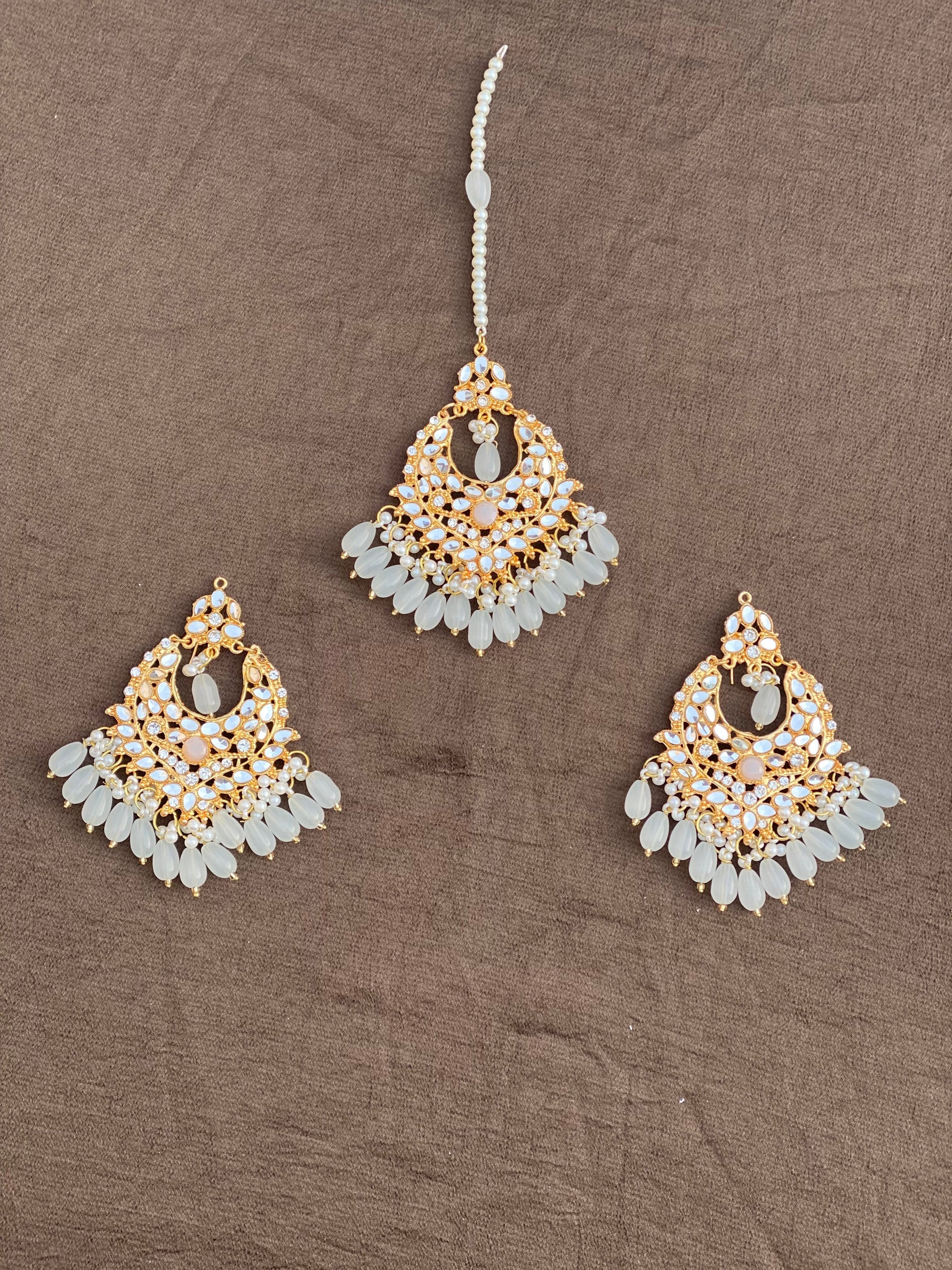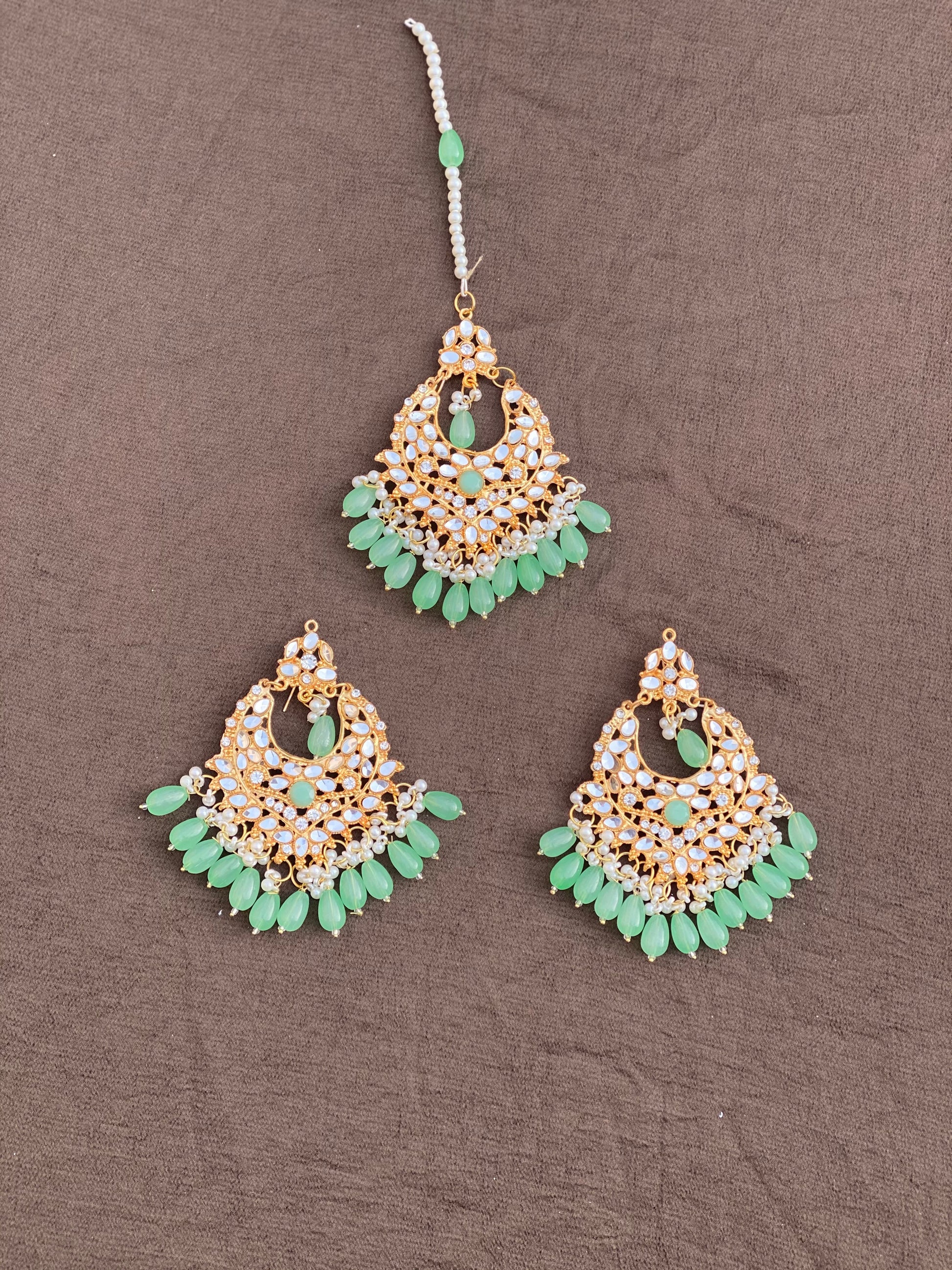 Refresh your look with a stunning and festive set of earrings and bindi from sophistiquee. Whether you're looking to ramp up the glamor of your wedding sari or just add a touch of sparkle to your everyday ensemble, this set is the perfect choice. The earrings and bindi come in three beautiful shades, white, champagne and sea green, with pearly detailing. Make any look feel instantly special with this luxurious earring and bindi set from sophistiquee.
