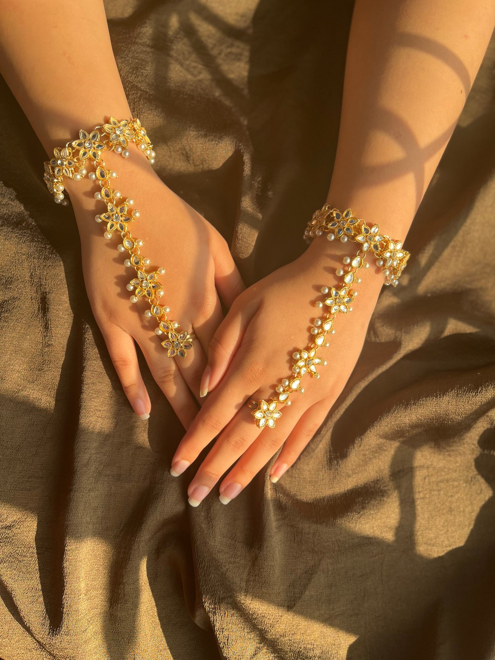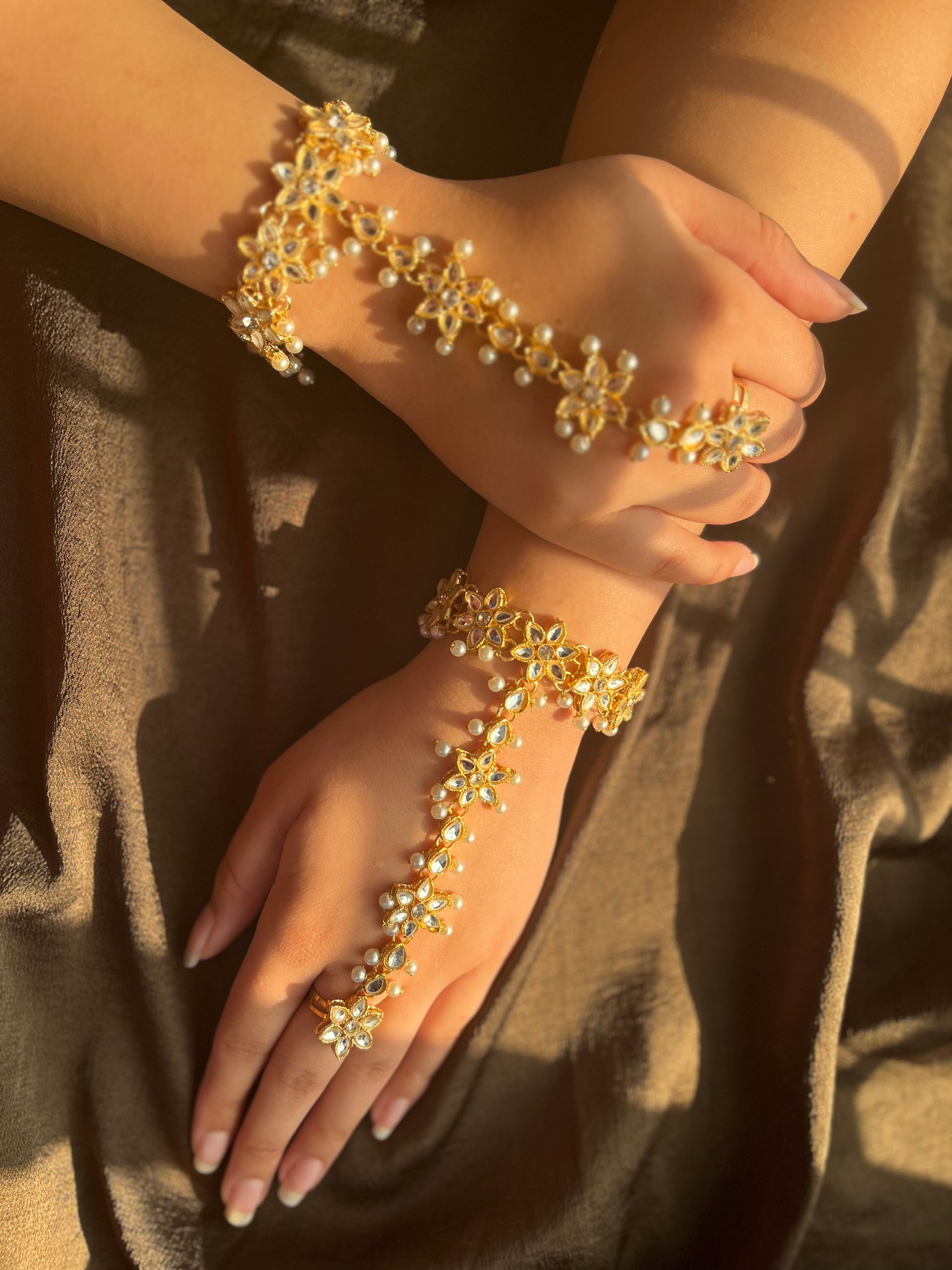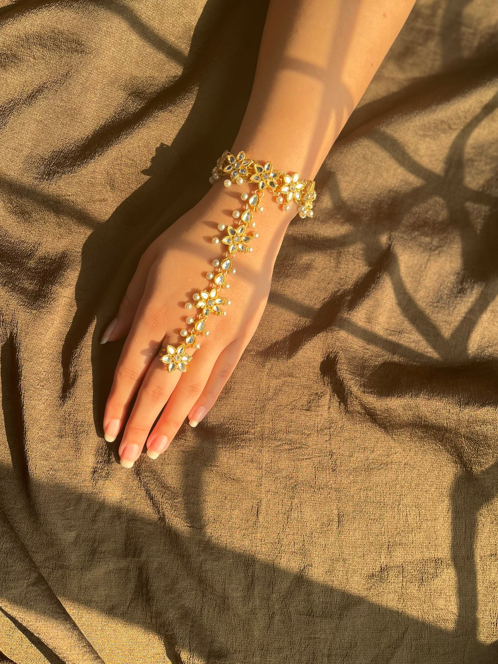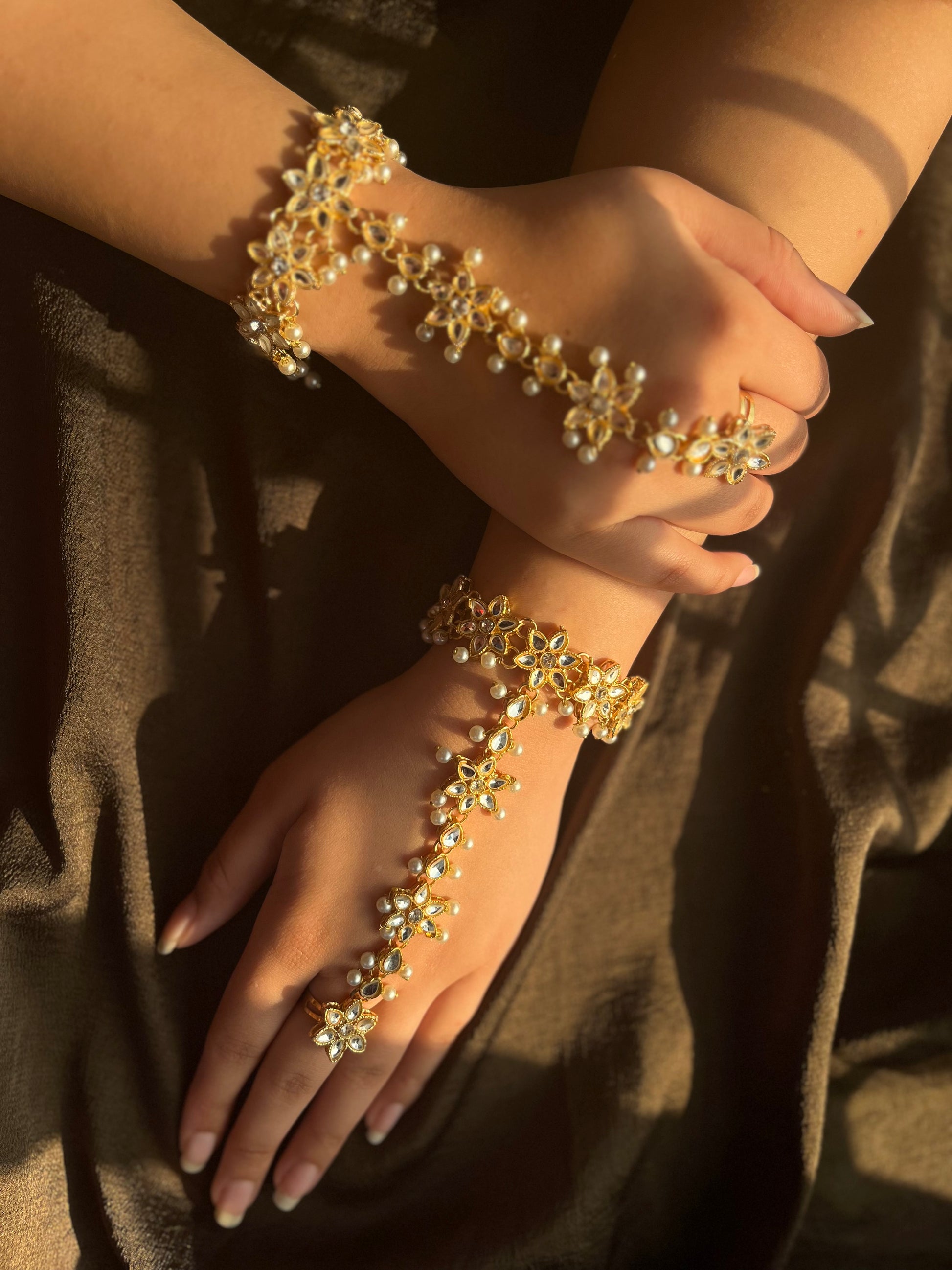 Make a statement with your accessories this wedding season. Sophistiquee has designed the perfect hand harness for a glamorous and sophisticated look that everyone will be talking about. Whether you’re attending a formal event or just going out for the night, this festive golden hand harness is sure to be a trendy accessory that will keep you standing out from the crowd. Step out of your comfort zone and show off your style with an eye-catching golden hand harness.
