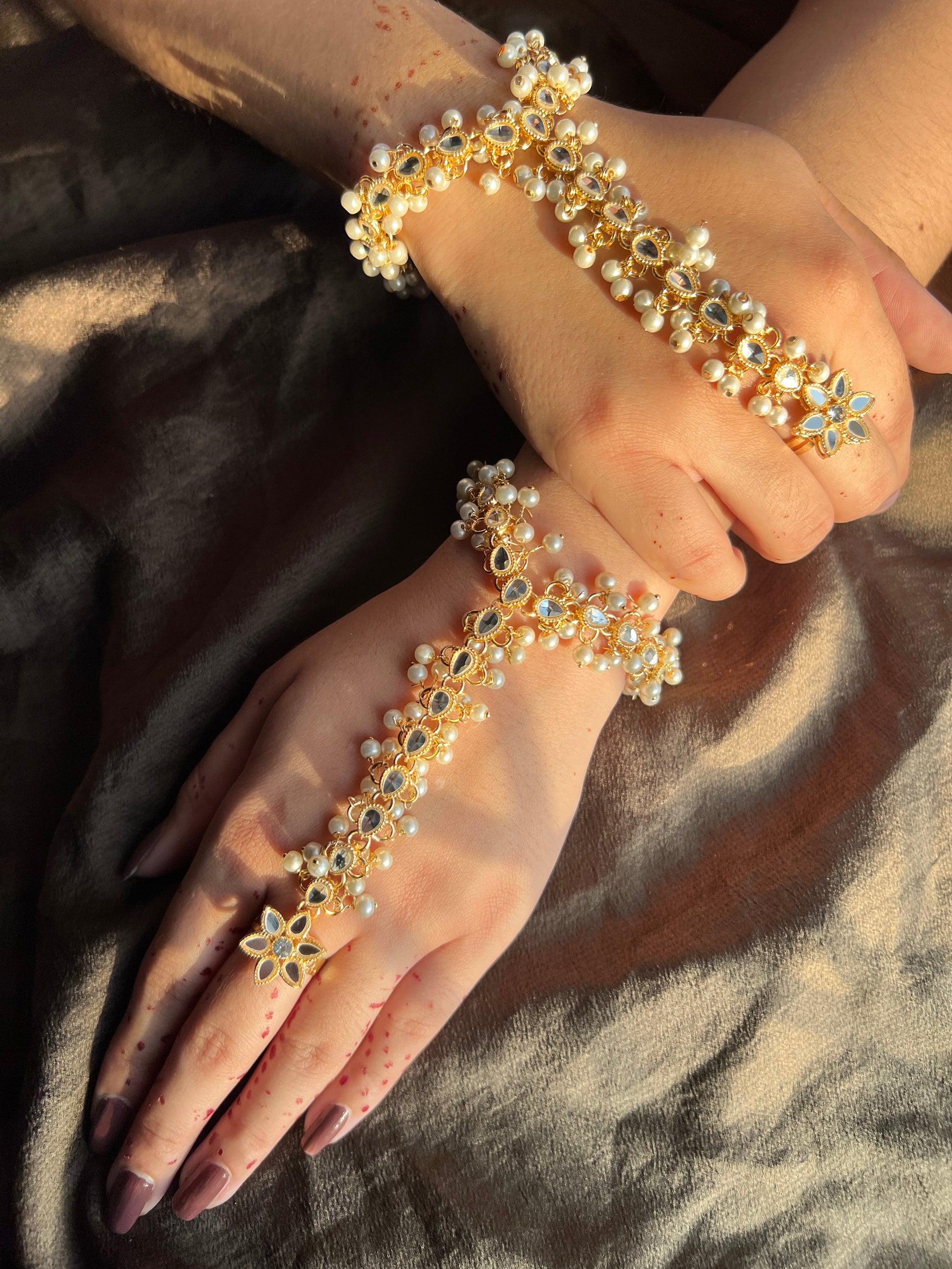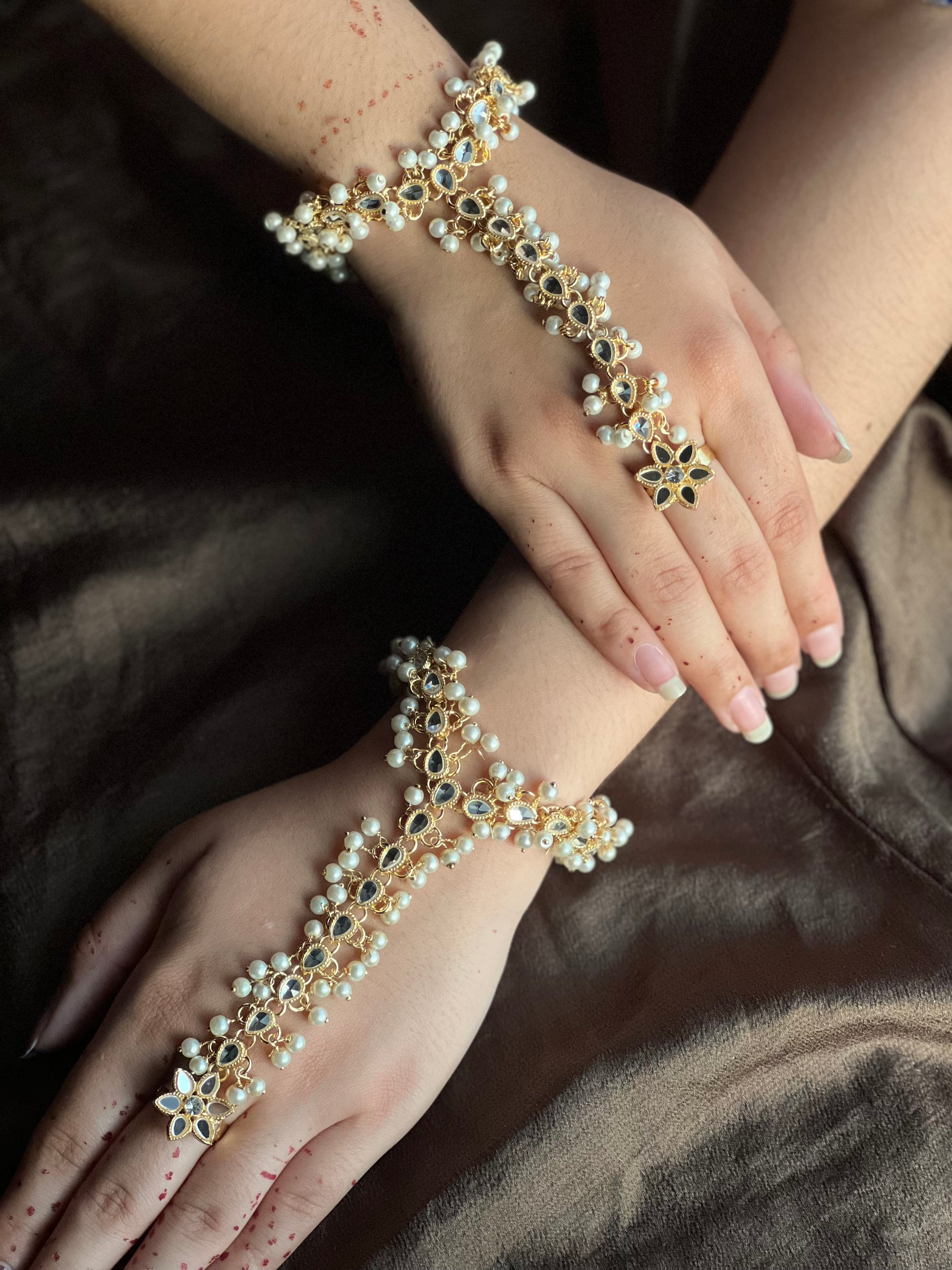 Make a statement with your accessories this wedding season. Sophistiquee has designed the perfect hand harness for a glamorous and sophisticated look that everyone will be talking about. Whether you’re attending a formal event or just going out for the night, this festive silver hand harness is sure to be a trendy accessory that will keep you standing out from the crowd. Step out of your comfort zone and show off your style with an eye-catching silver hand harness.