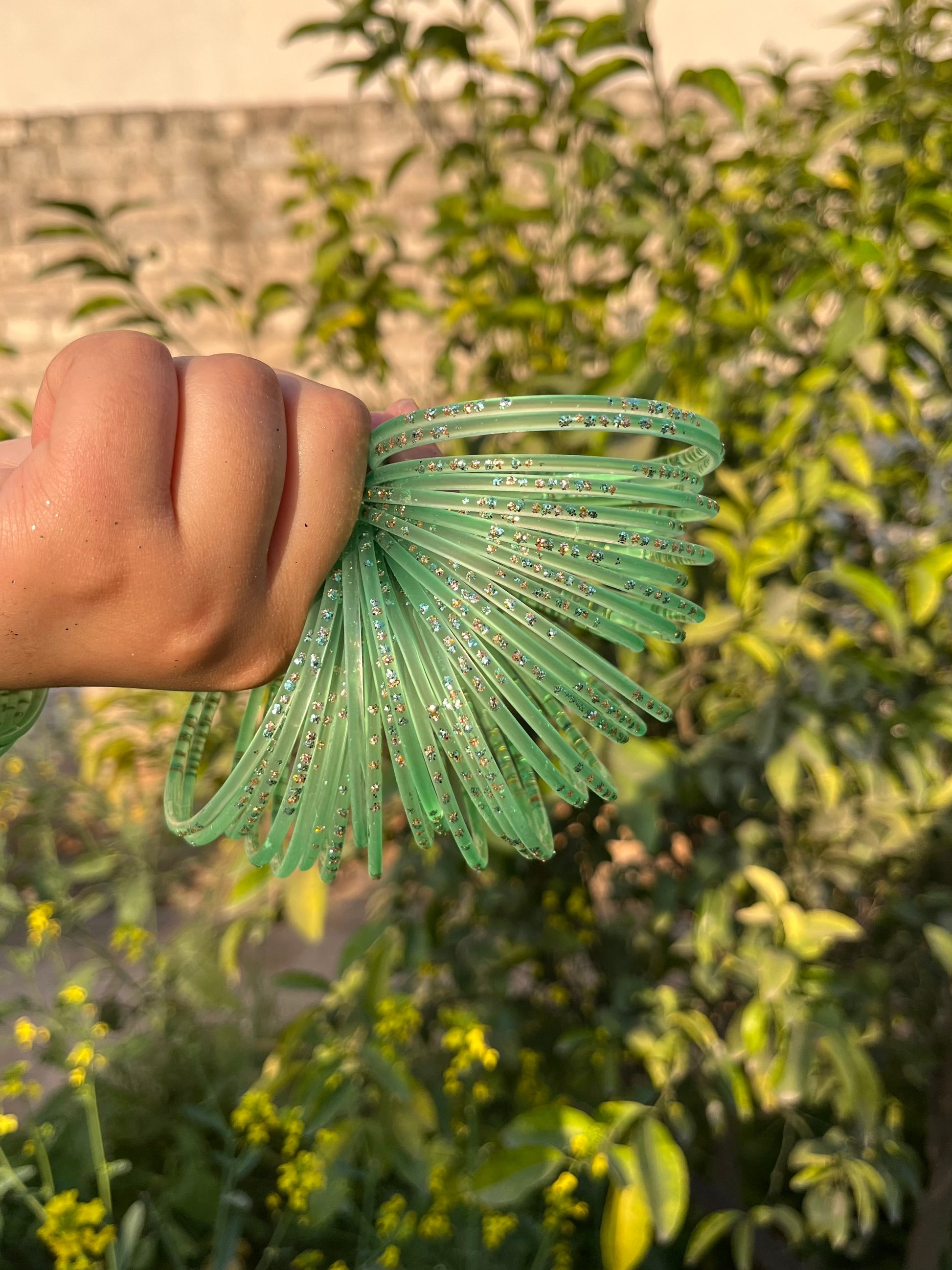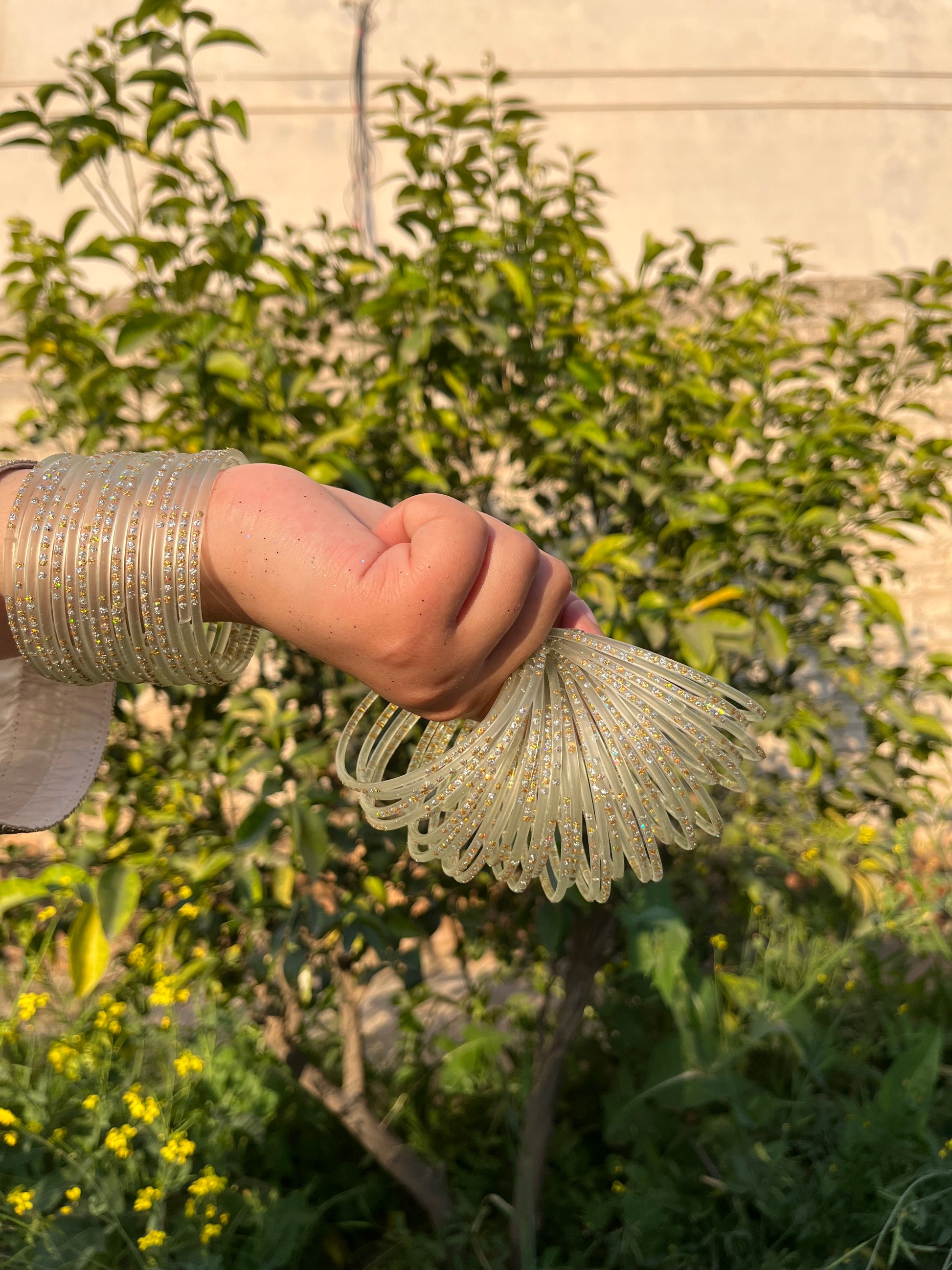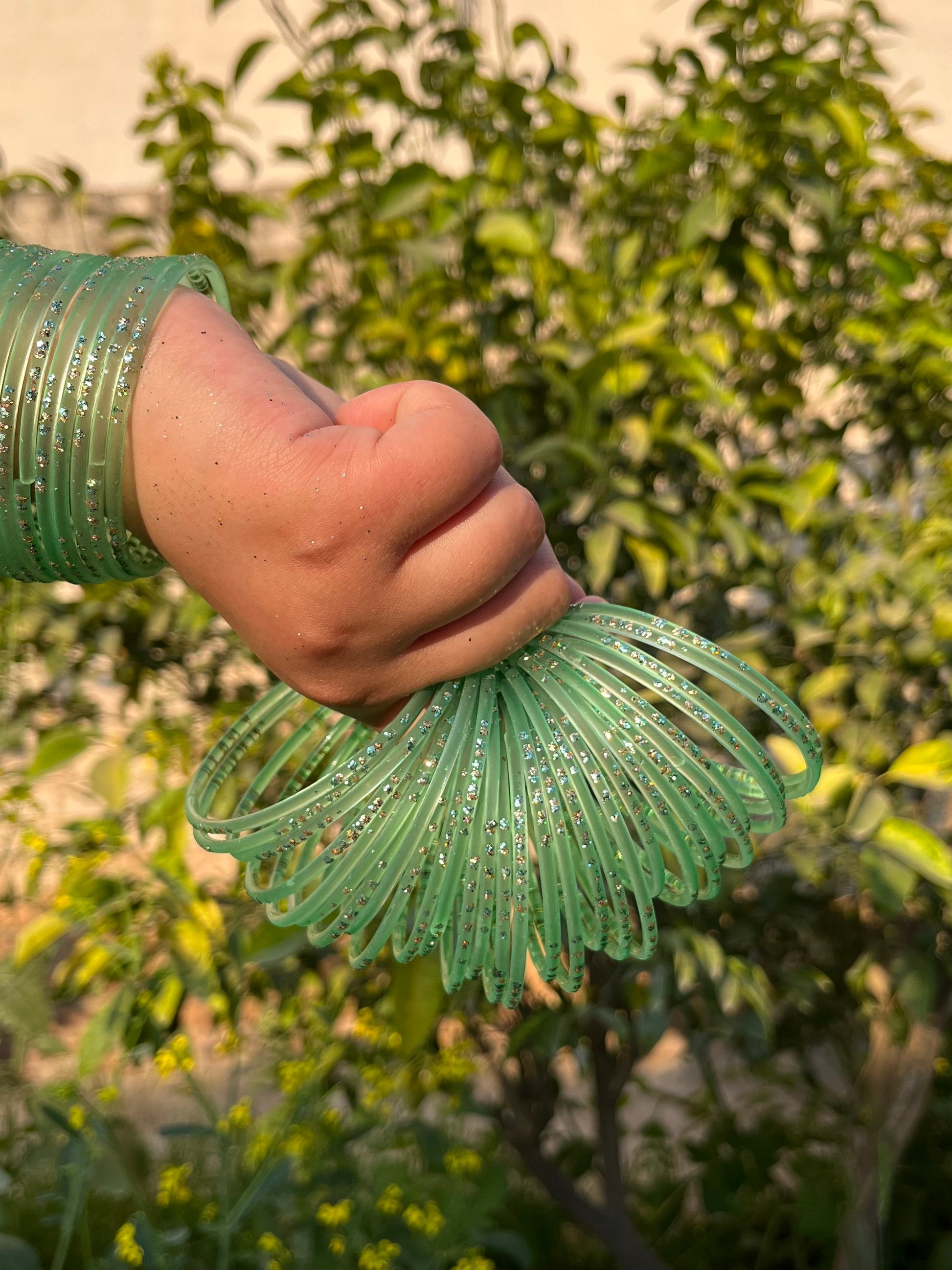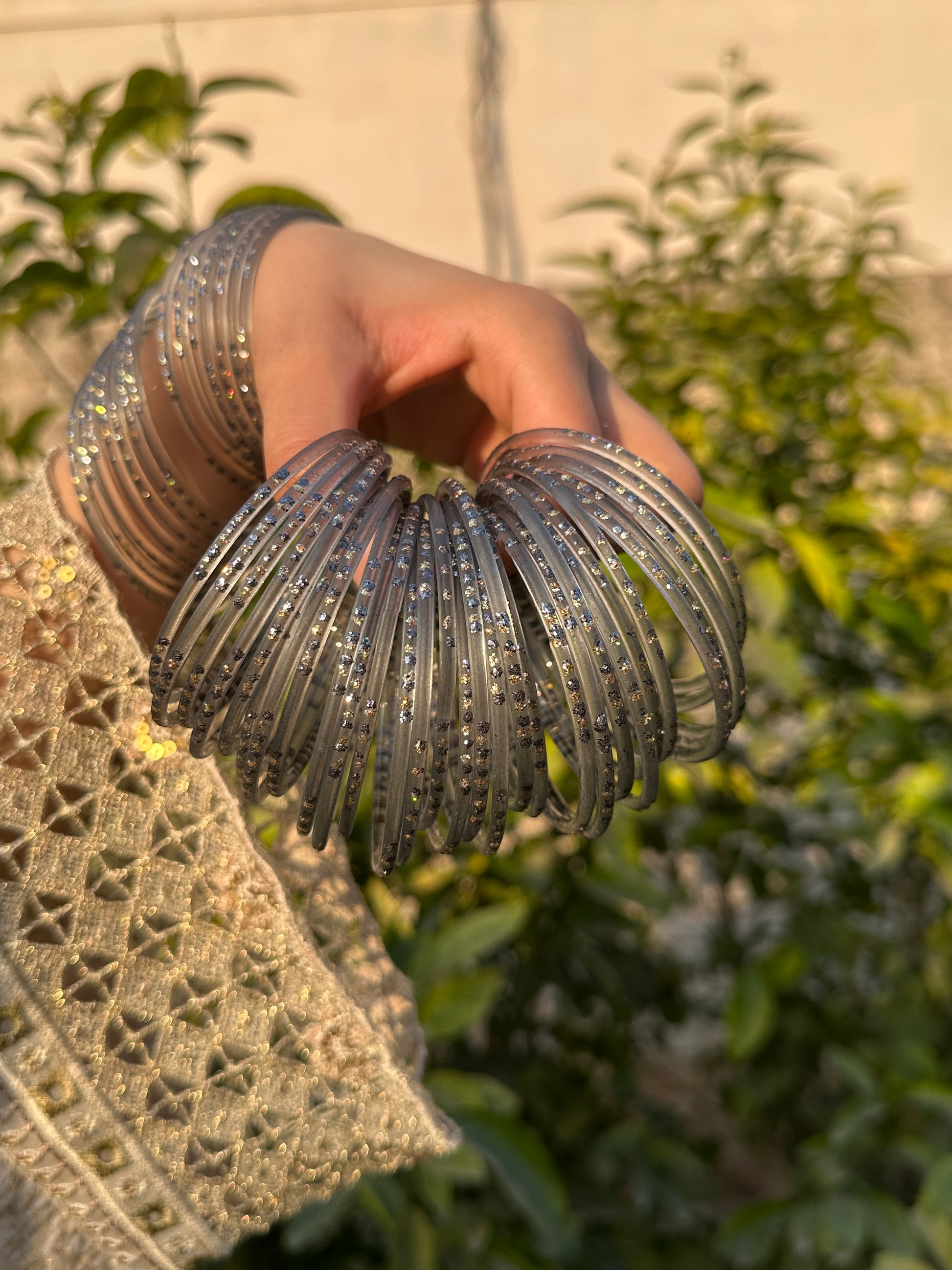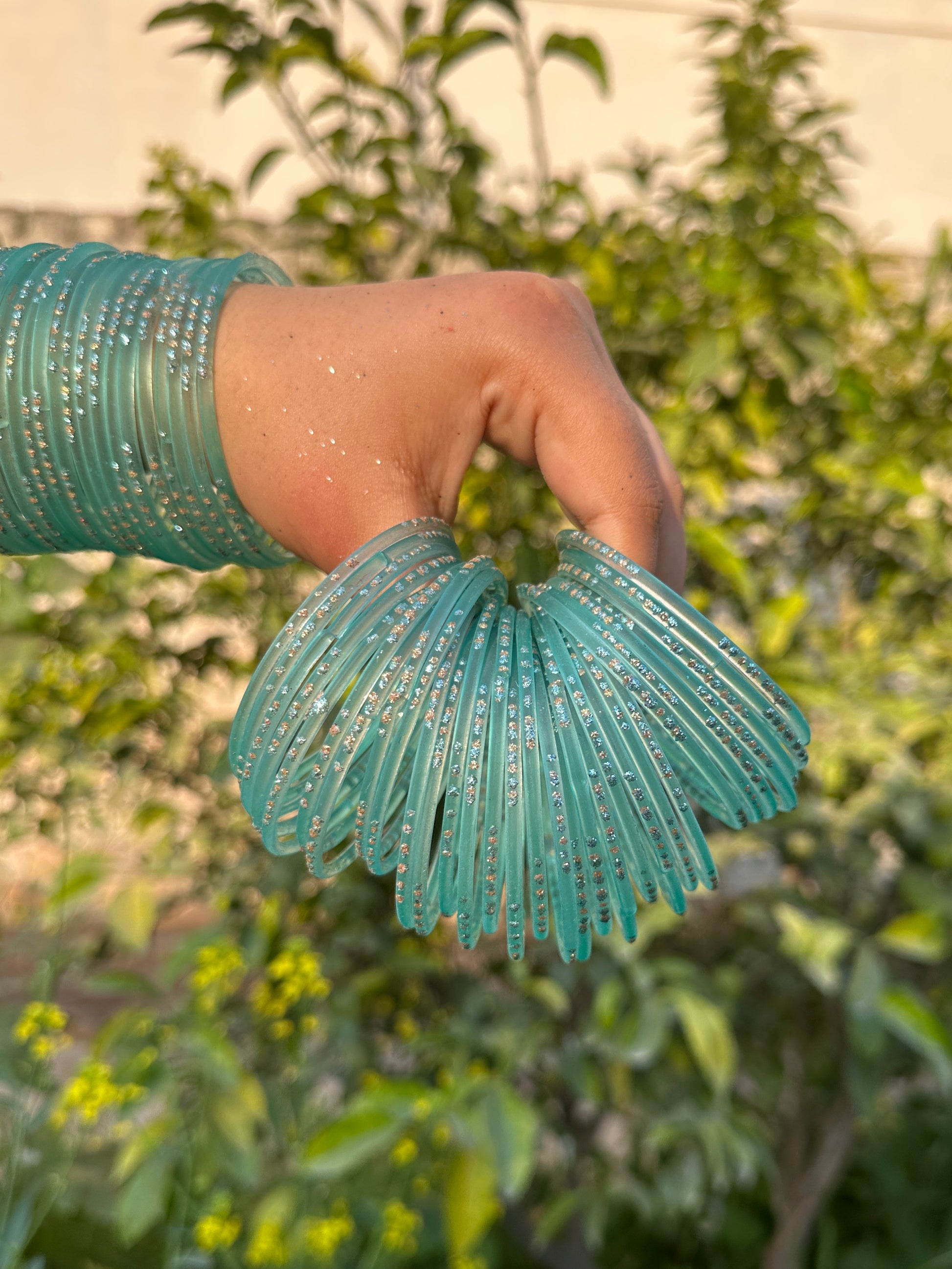These Jhalak glass bangles are designed for a full, elegant stacked look with a soft traditional chime. Perfect for eid or festive styling, they add effortless desi charm to any outfit. ✨