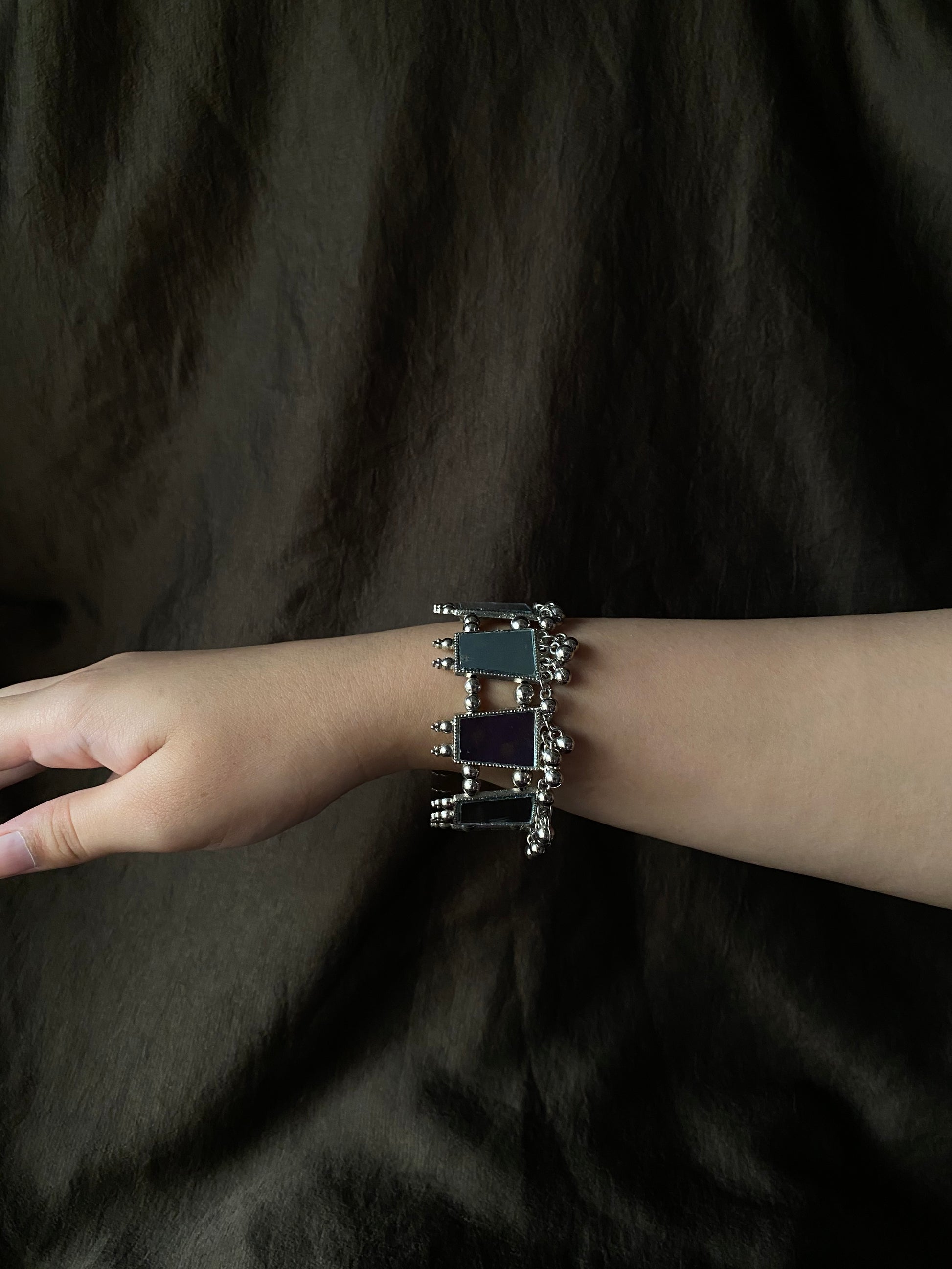Add some ethnic flair to your ensemble with this traditional and statement-making mirror handcuff bangle. Crafted from a blend of metals, this arm candy delivers festive vibes whether you wear it solo or stack it with other bracelets. The mirrored surface makes it a literal reflection of your personal style while the curved cuff shape hugs your wrist in a comfortable yet eye-catching way. Slip it on and watch how it instantly transforms even the simplest outfit into something a little more whimsical and worldly. A touch of shine, a dash of shine- this arm beauty is the perfect accessory to dress up any look.