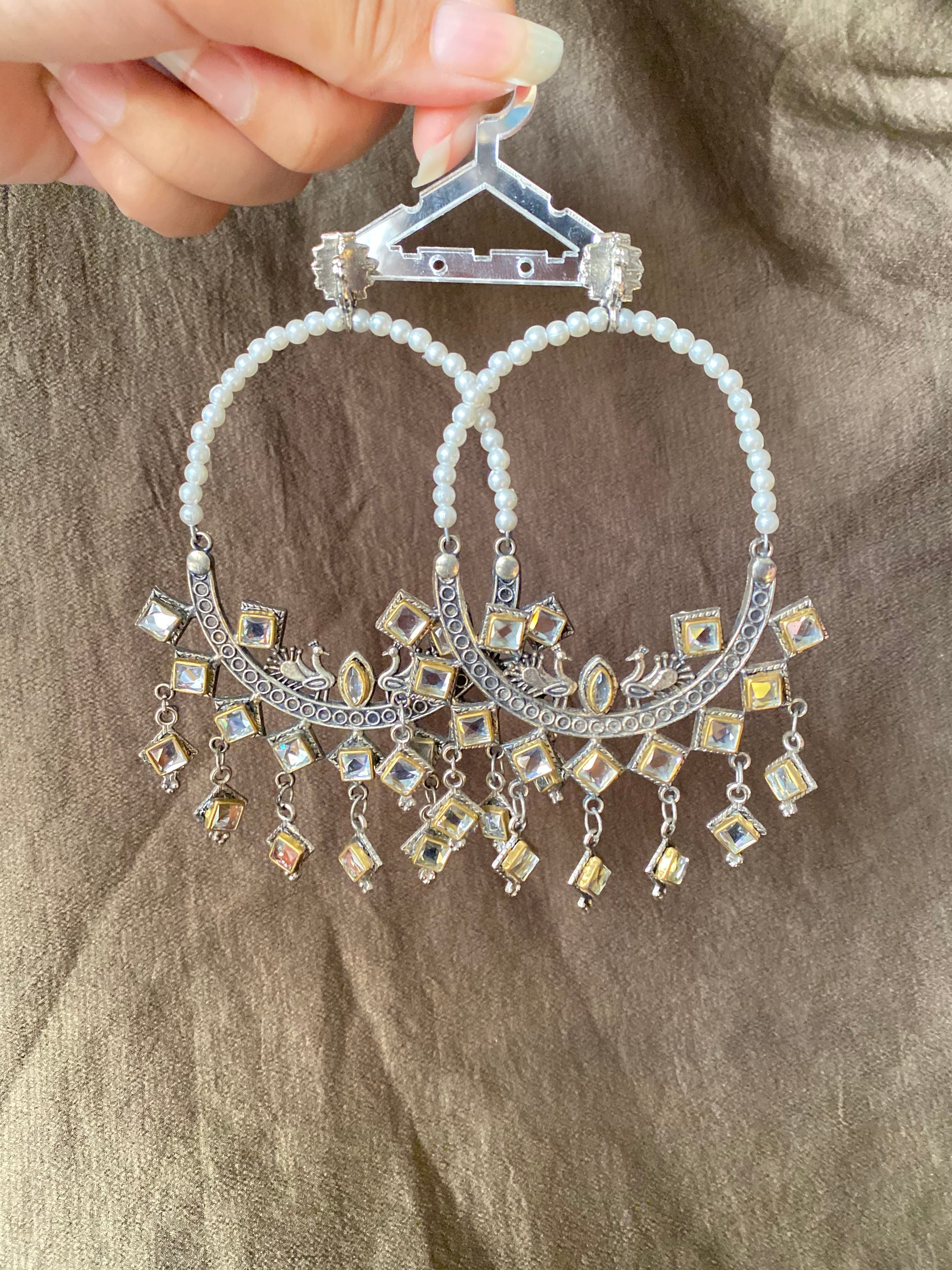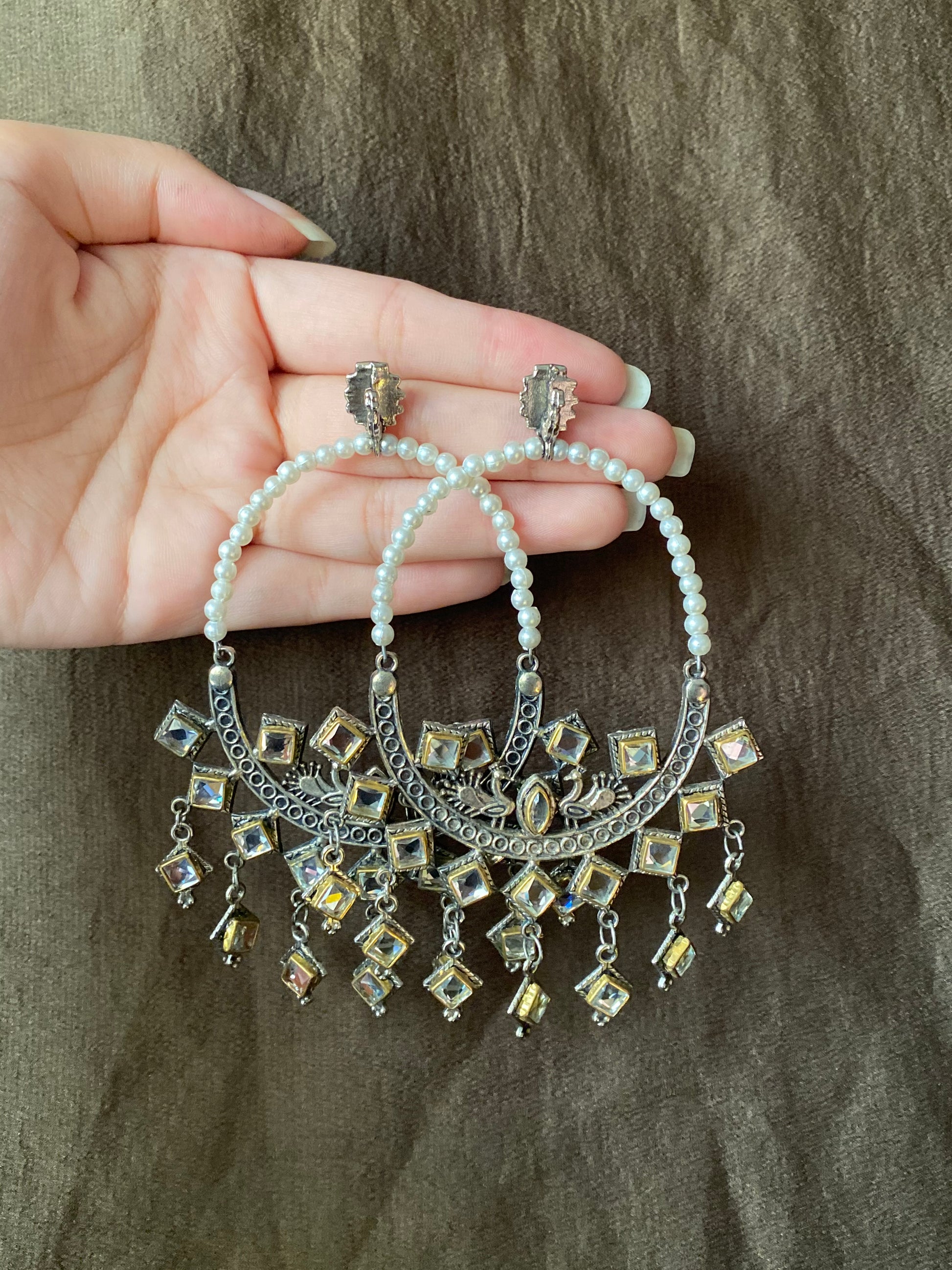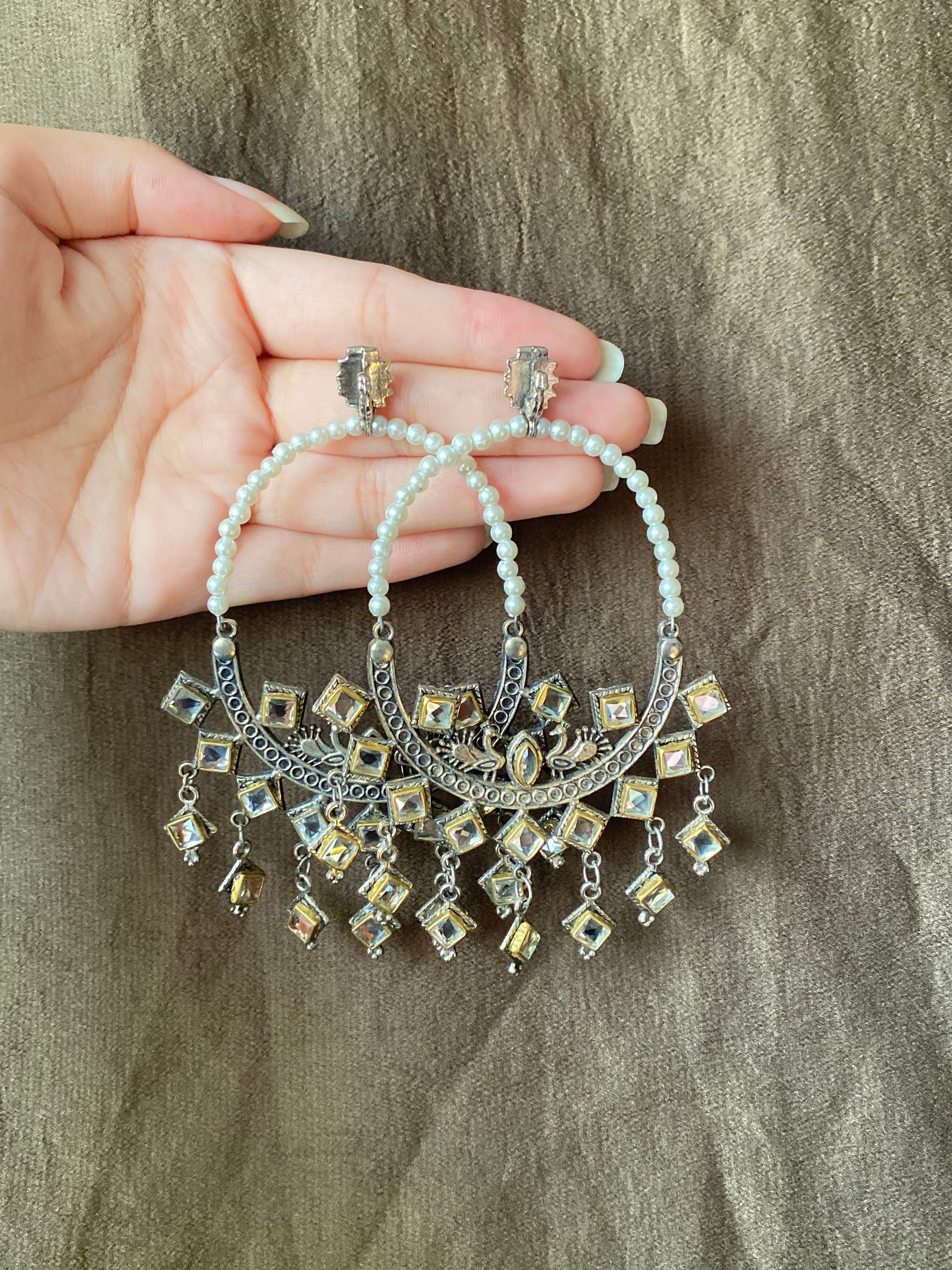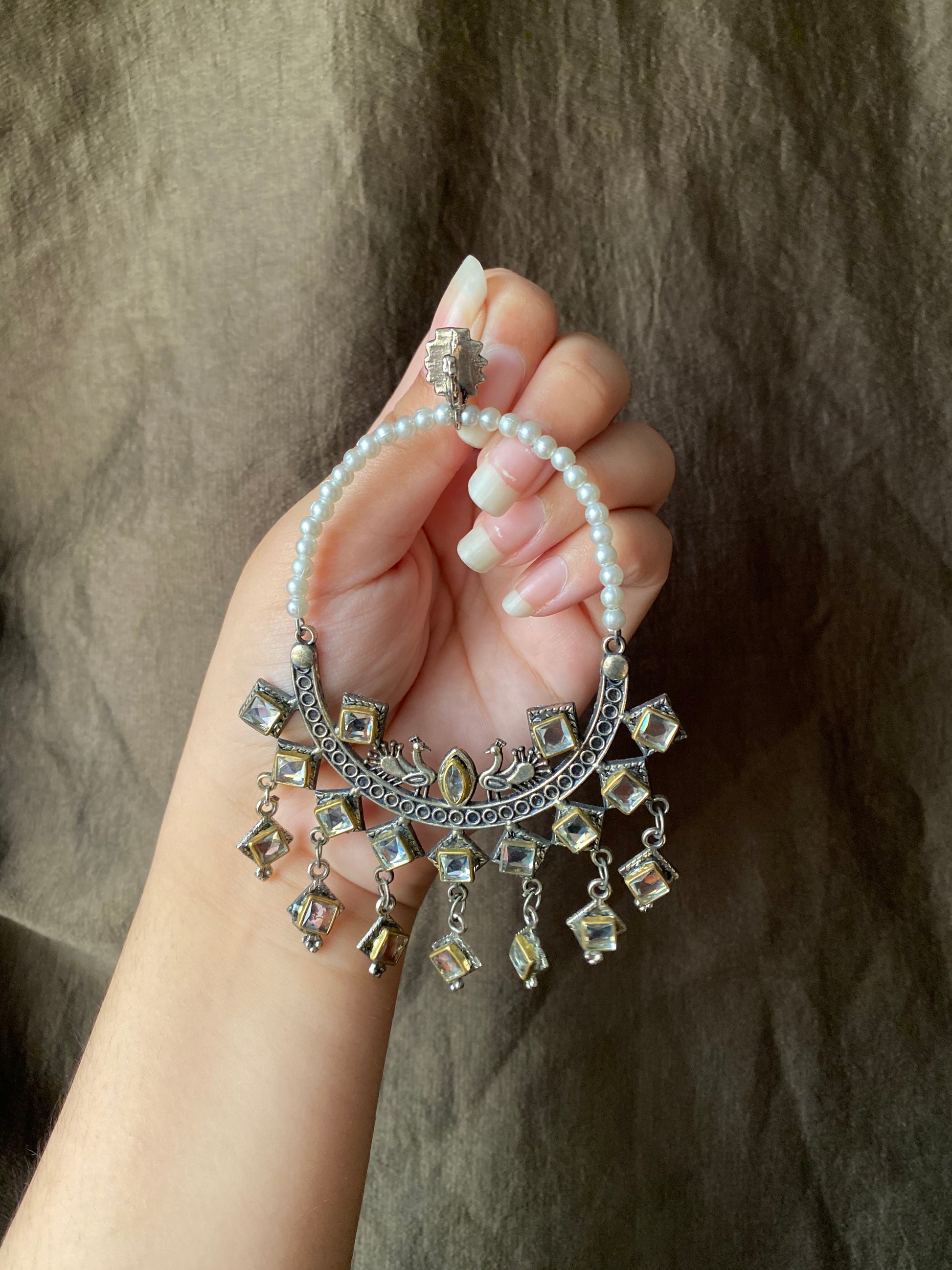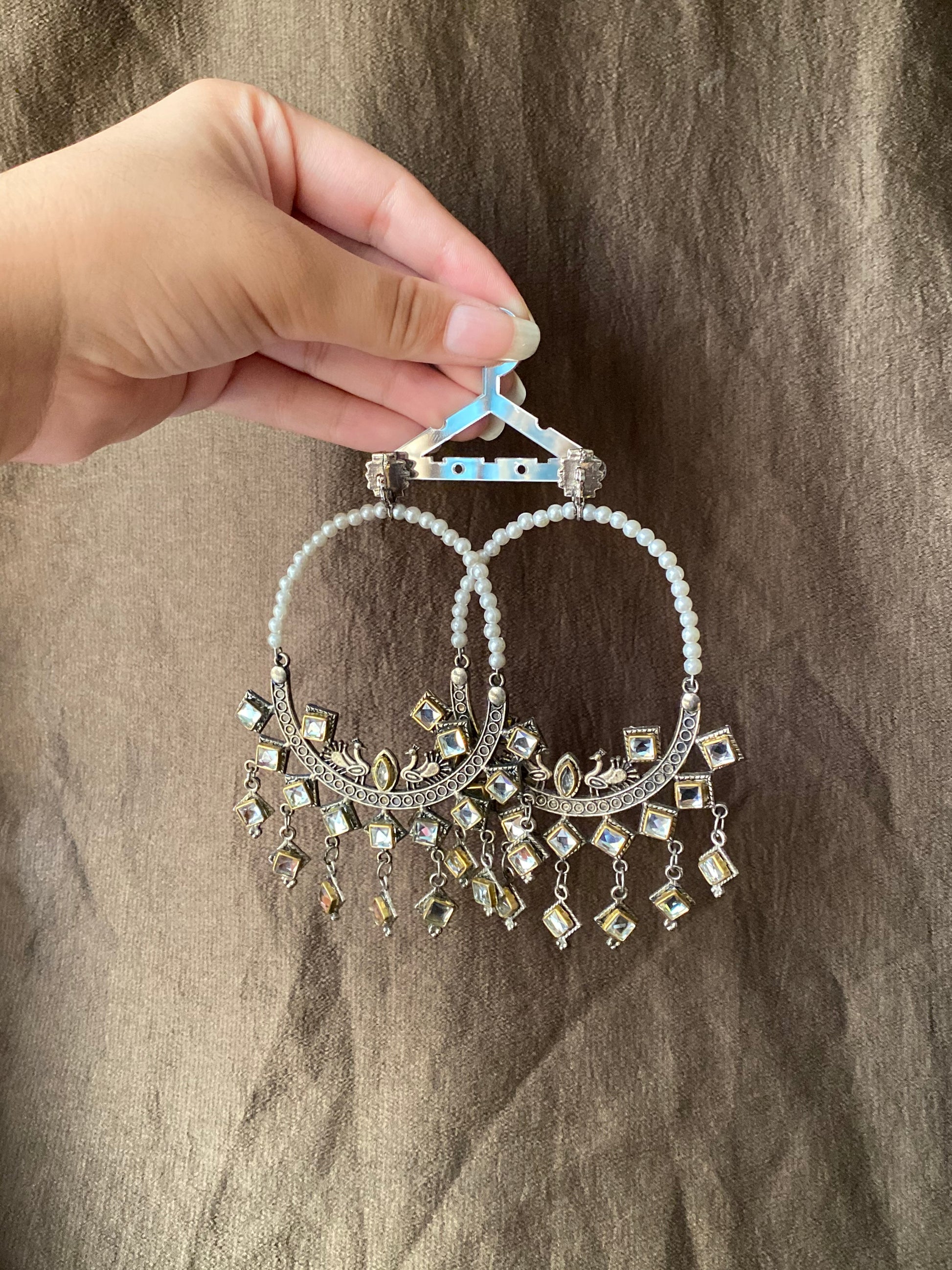 This chandbali is the epitome of timeless elegance. Crafted from lustrous tassels that catch the light with every turn, this festive piece evokes images of brides adorned in heirloom jewelry for their grand entrances. Whether you wear it with maang tikka or simply on their own, its minimalistic yet dramatic design instantly elevates any traditional ensemble. Subtle yet striking, this statement chandbali makes the perfect accessory for an upcoming sangeet, mehendi or wedding celebration - instantly infusing your look with a touch of classic refinement that never goes out of style. Slip this chaandbali on and make a grand impression, channeling the grace and sophistication of iconic beauties for generations.