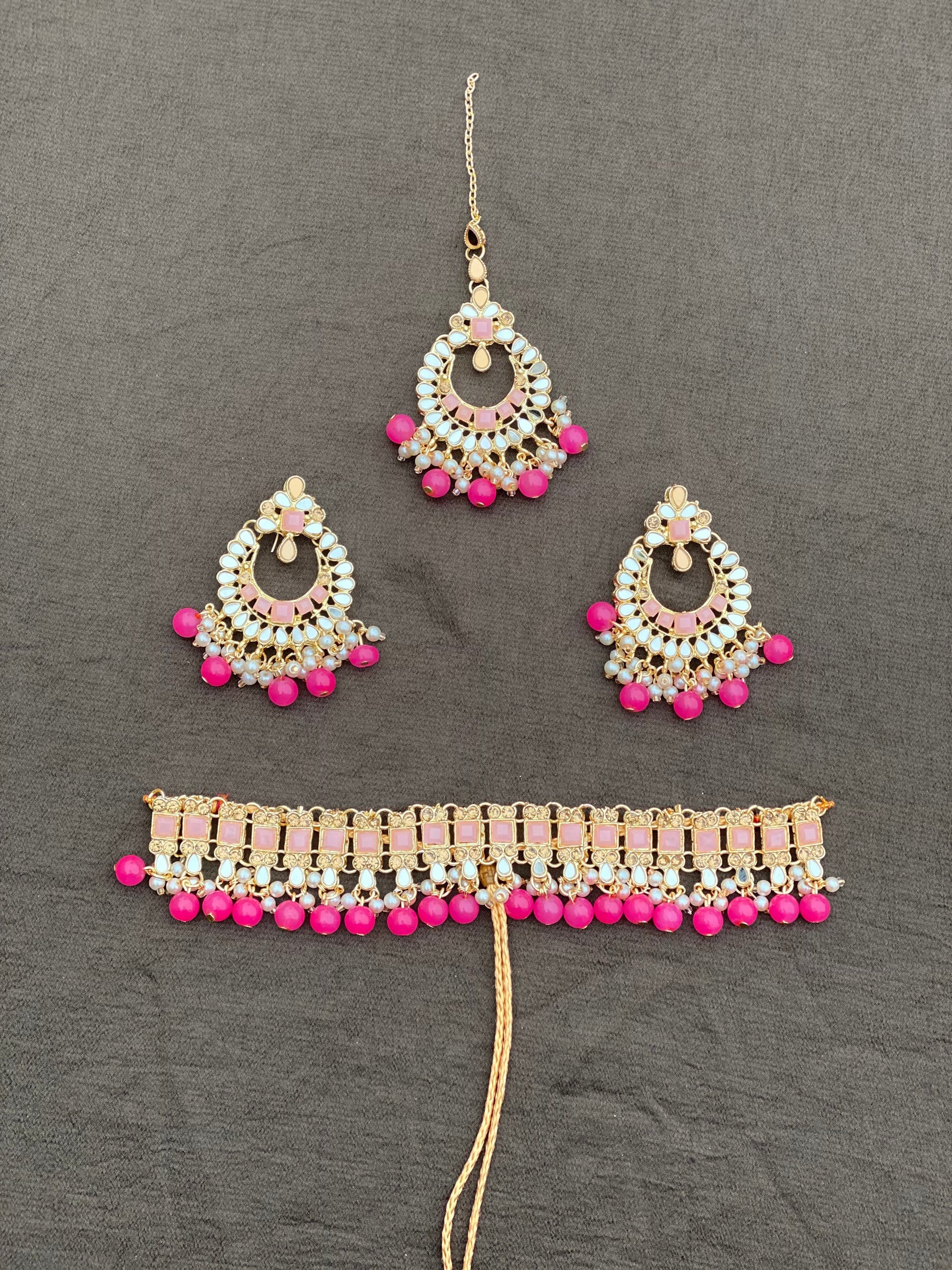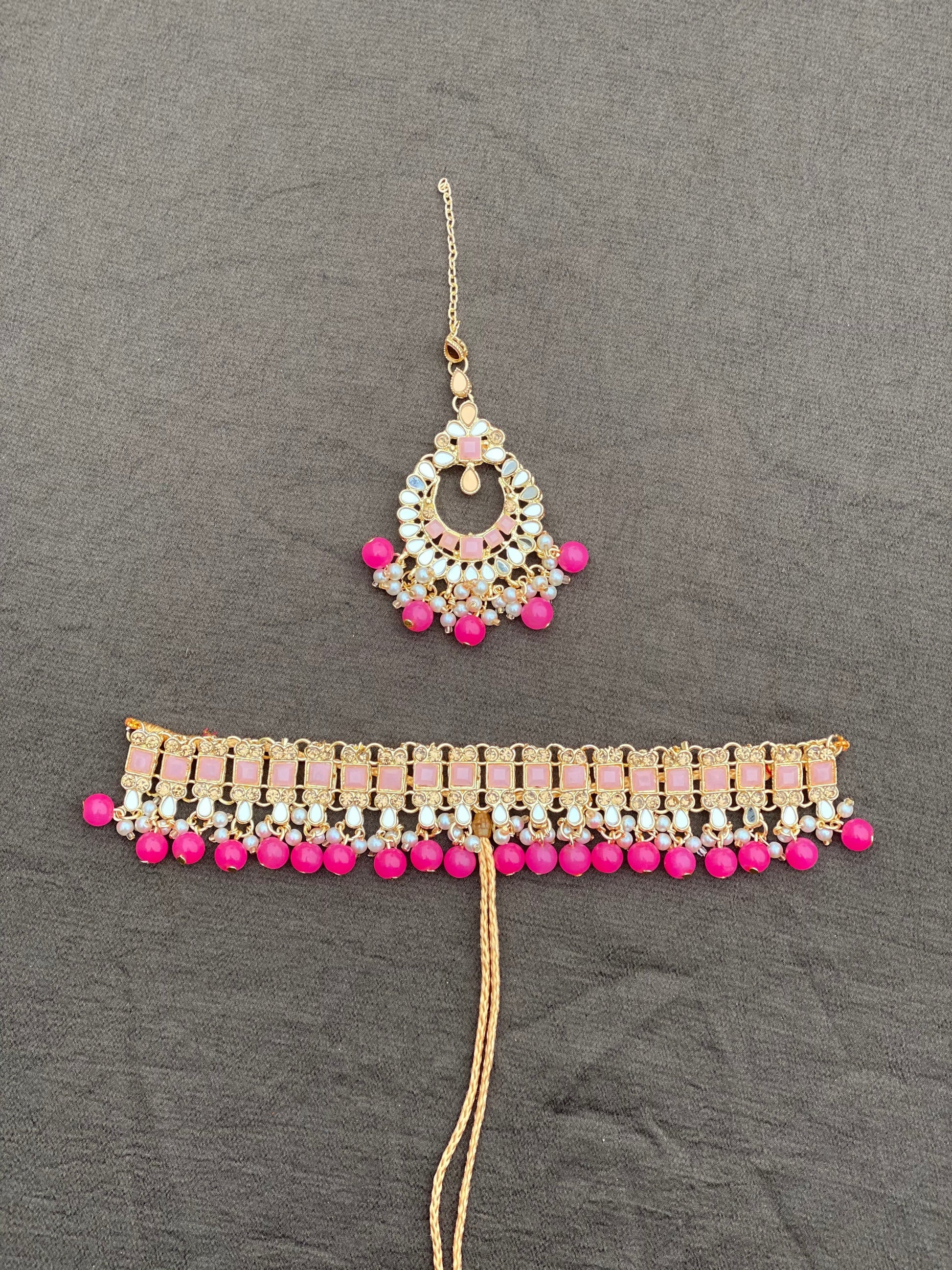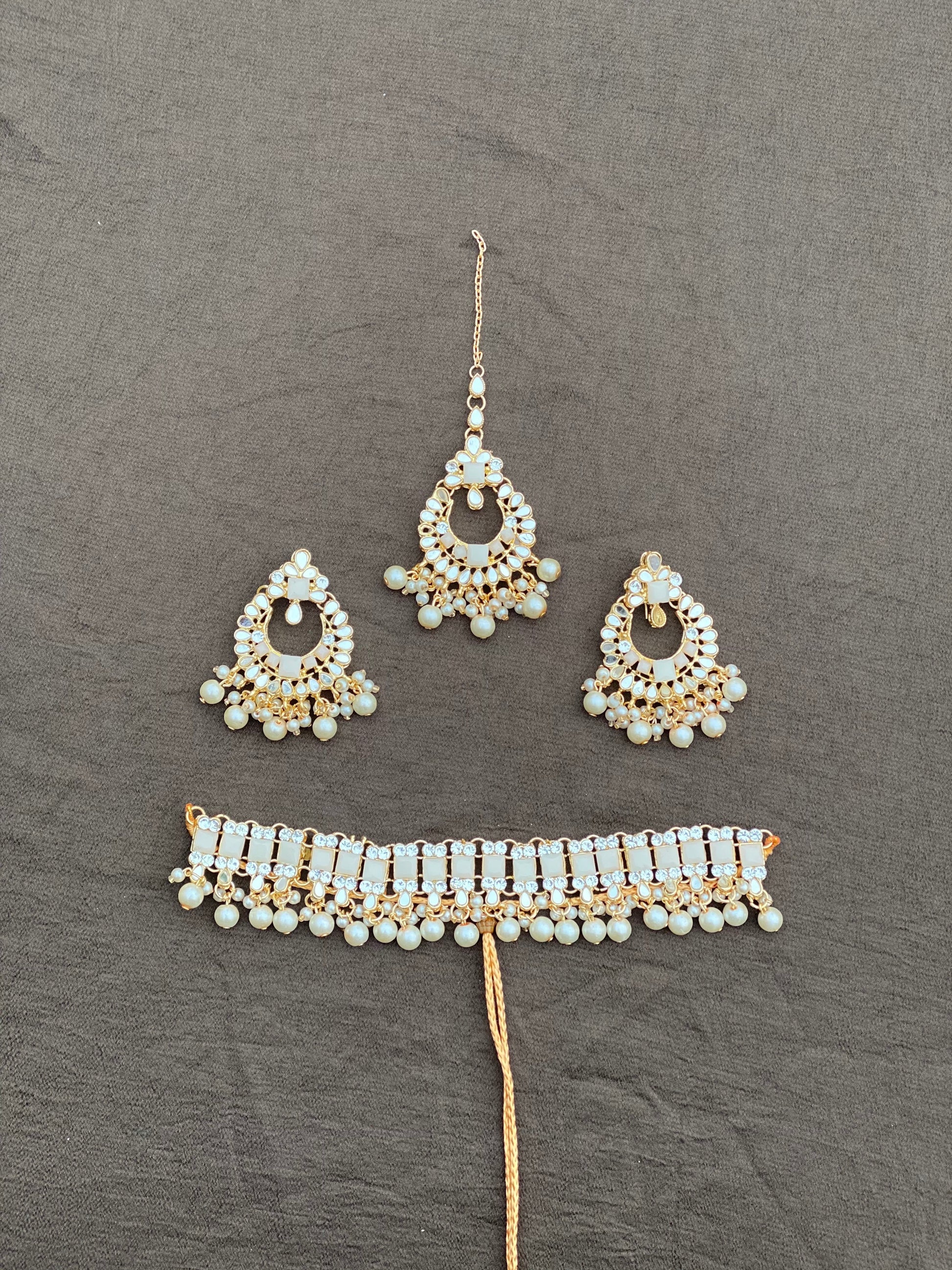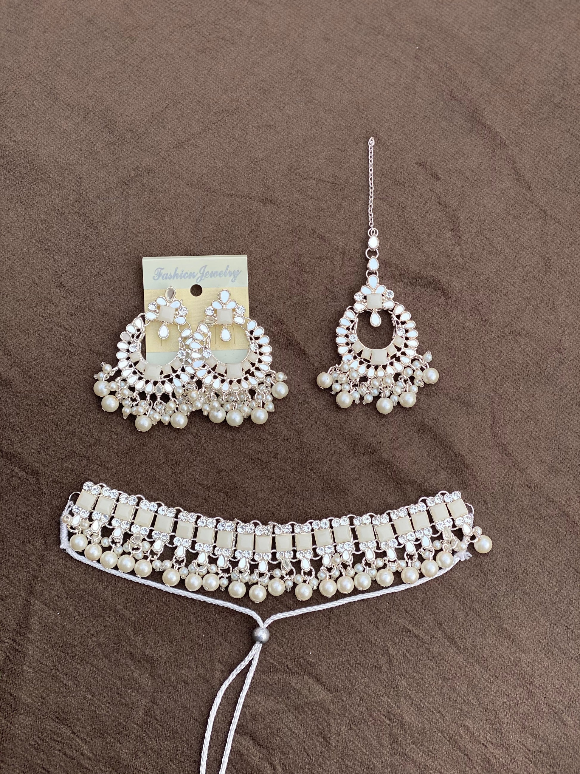 Be the belle of the ball with this Pearled Choker Set. Get all dressed up for special events or festive occasions with this set which includes a choker, earrings, and bindi-style necklace. Sophisticated and chic, this pearl-encrusted set will bring any outfit to life. Available in pink white and beige, bring a bit of glamor to your wardrobe with this timeless set. Elevate any look with this set for a truly stunning statement piece.