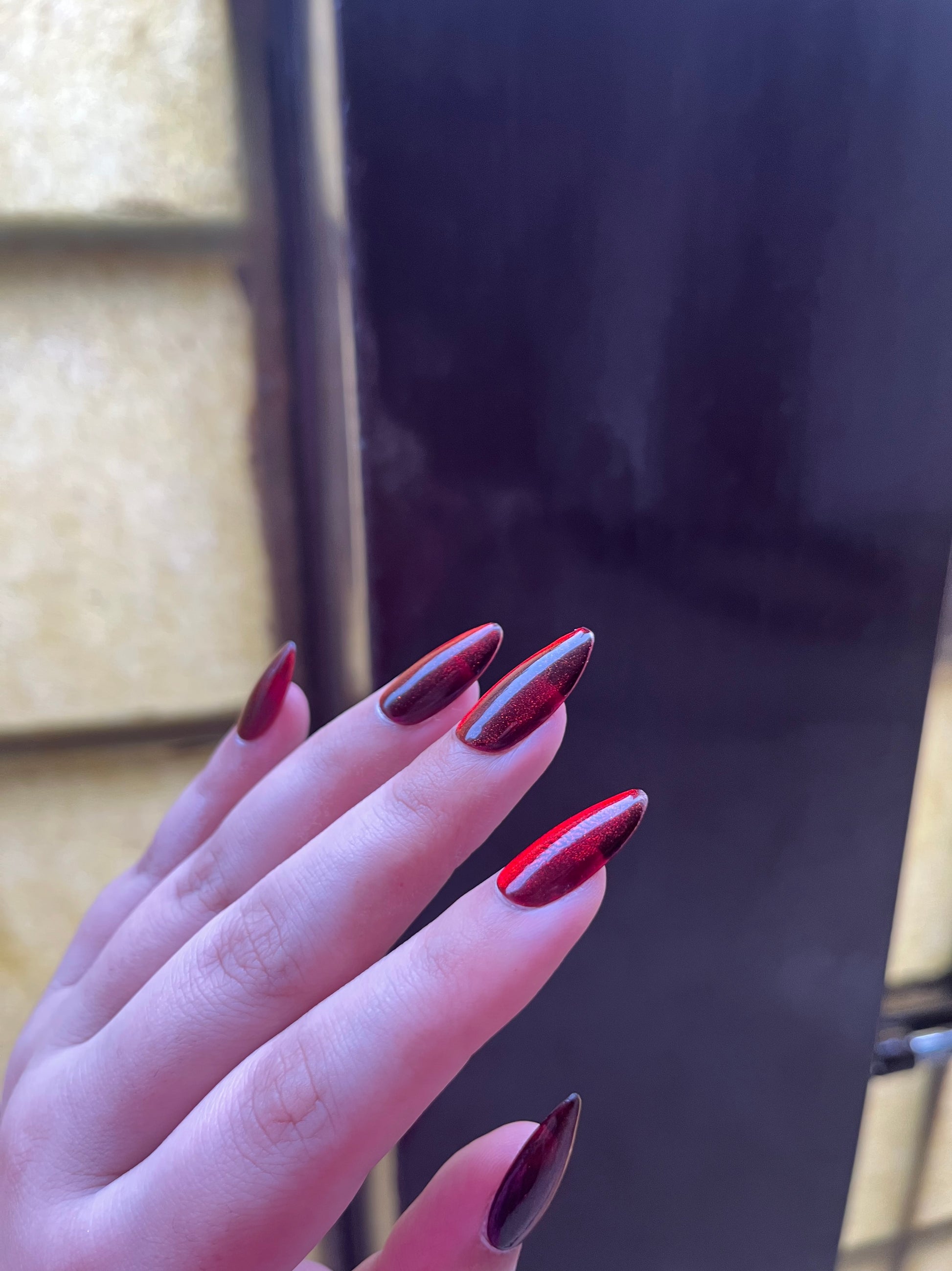 ✨ Ruby red Cat Eye – Handmade Press-On Nails ✨