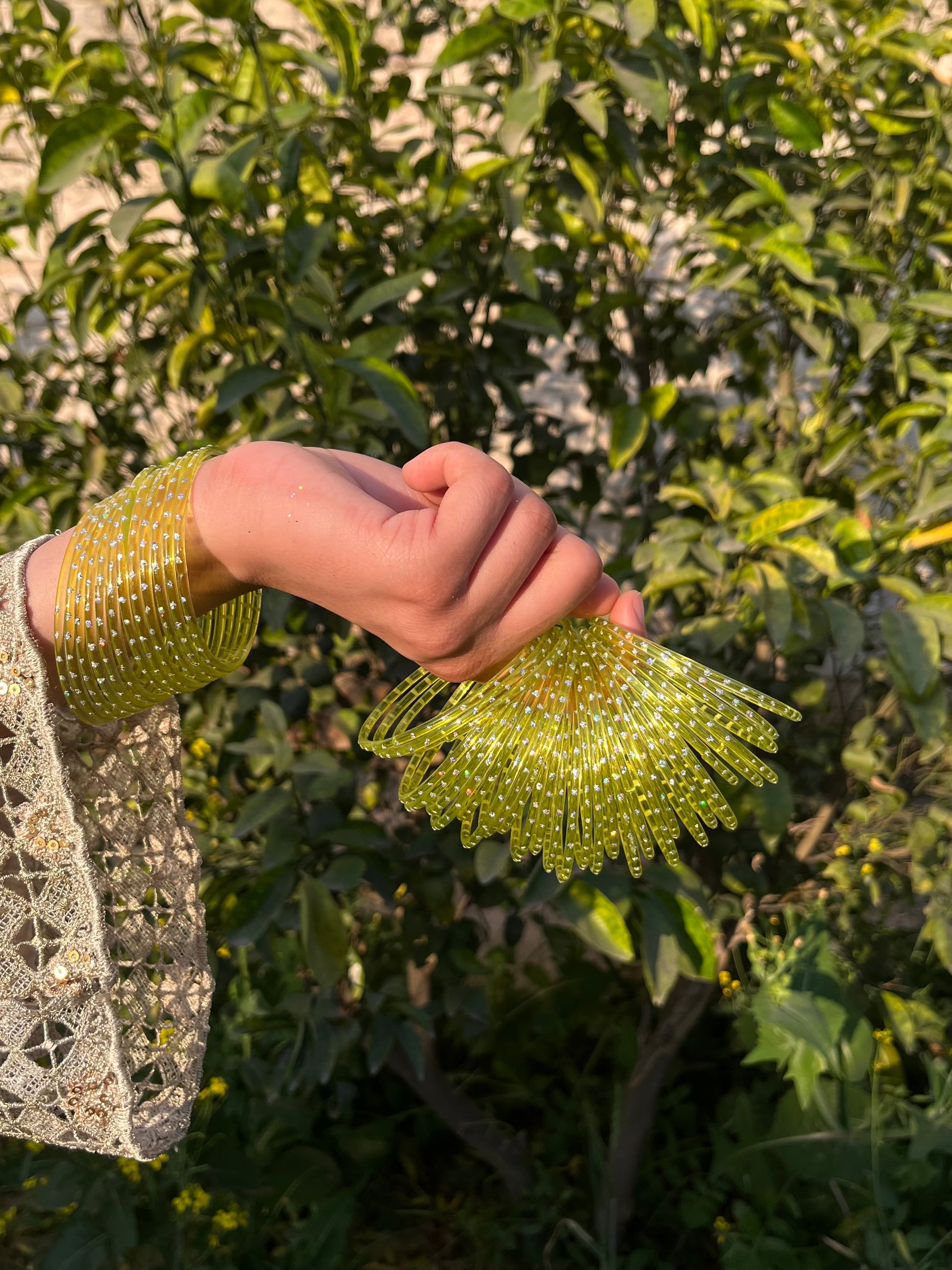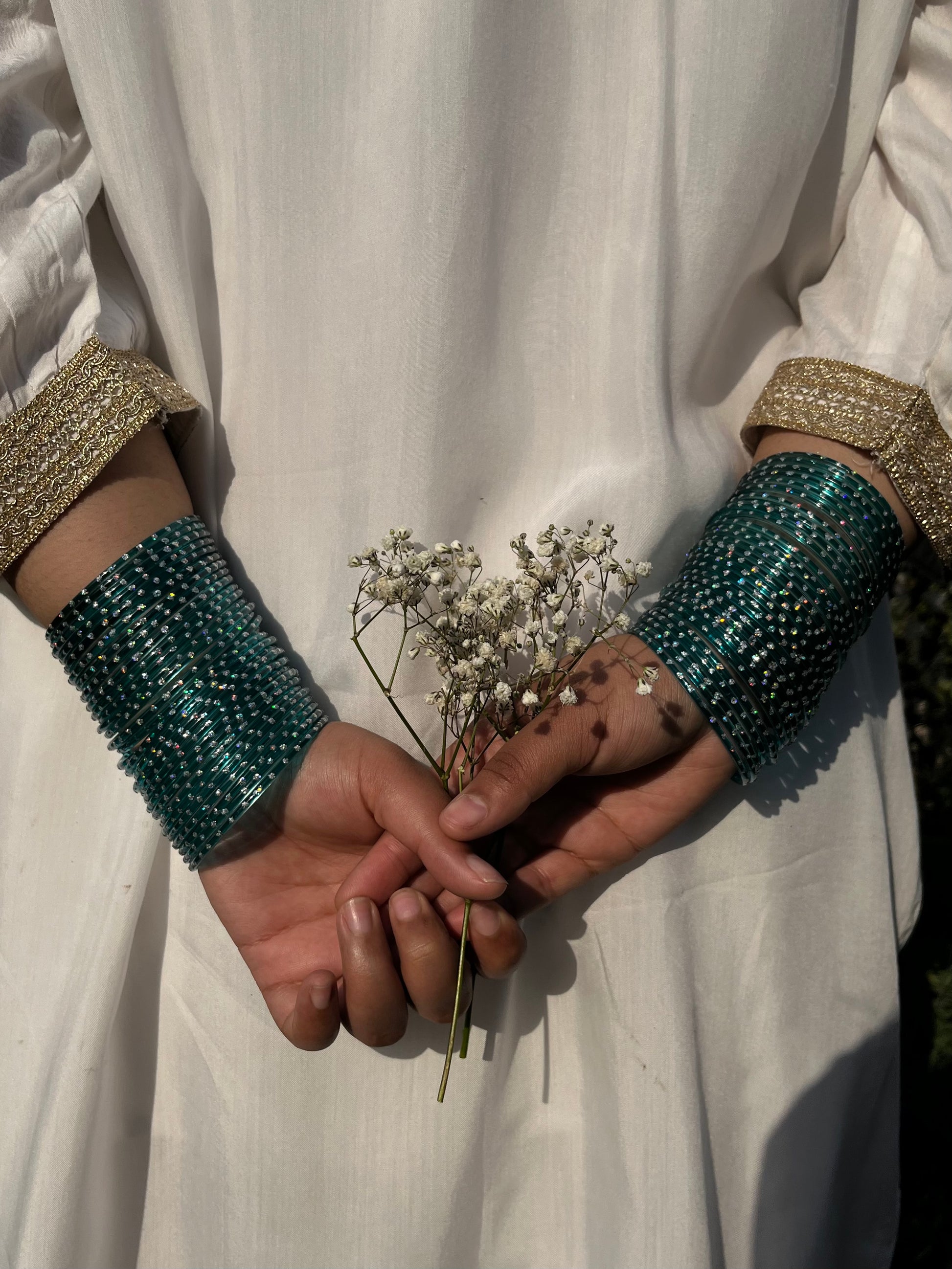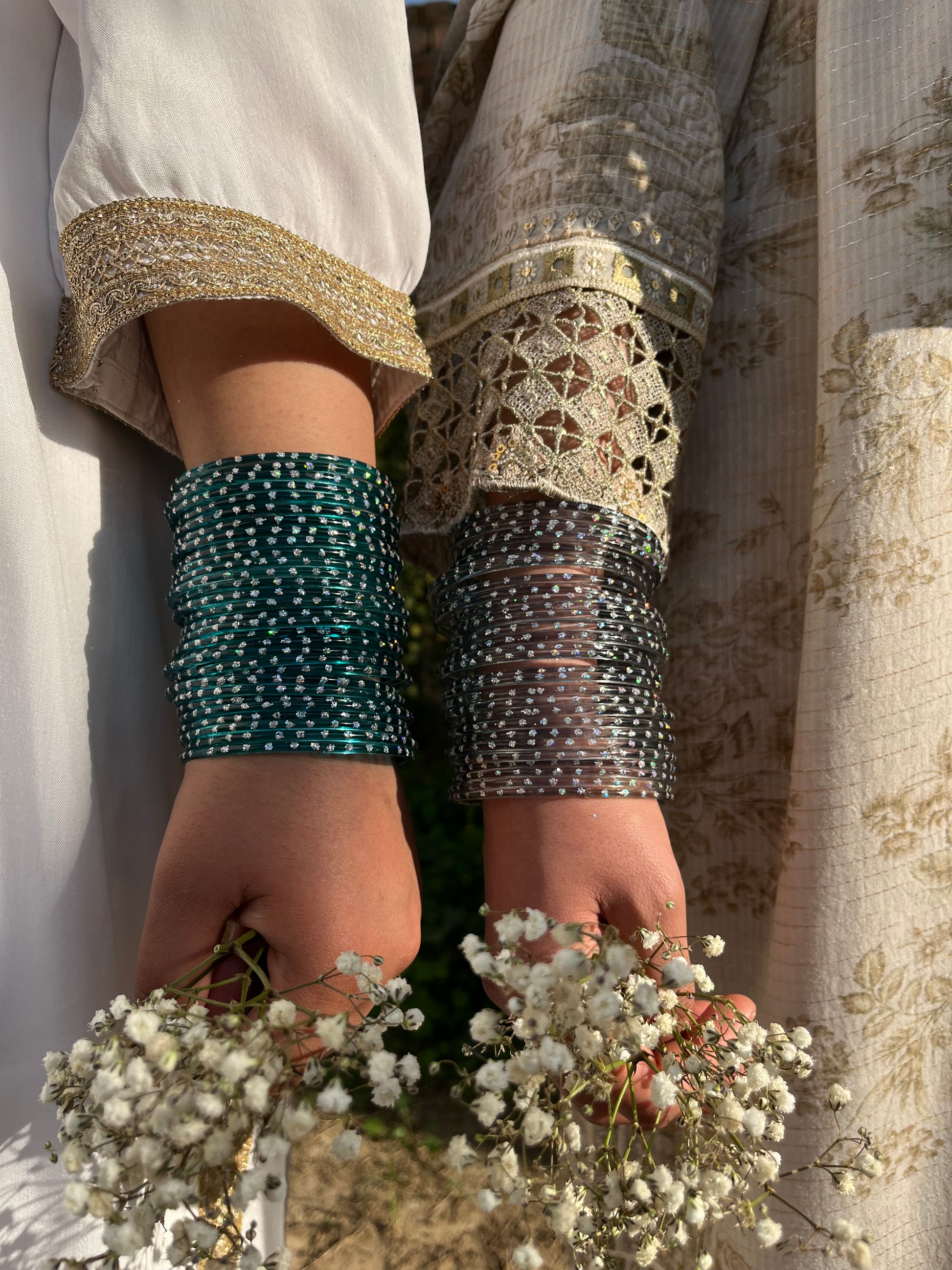 These Rain drop glass bangles are designed for a full, elegant stacked look with a soft traditional chime. Perfect for everyday wear or festive styling, they add effortless desi charm to any outfit. ✨
