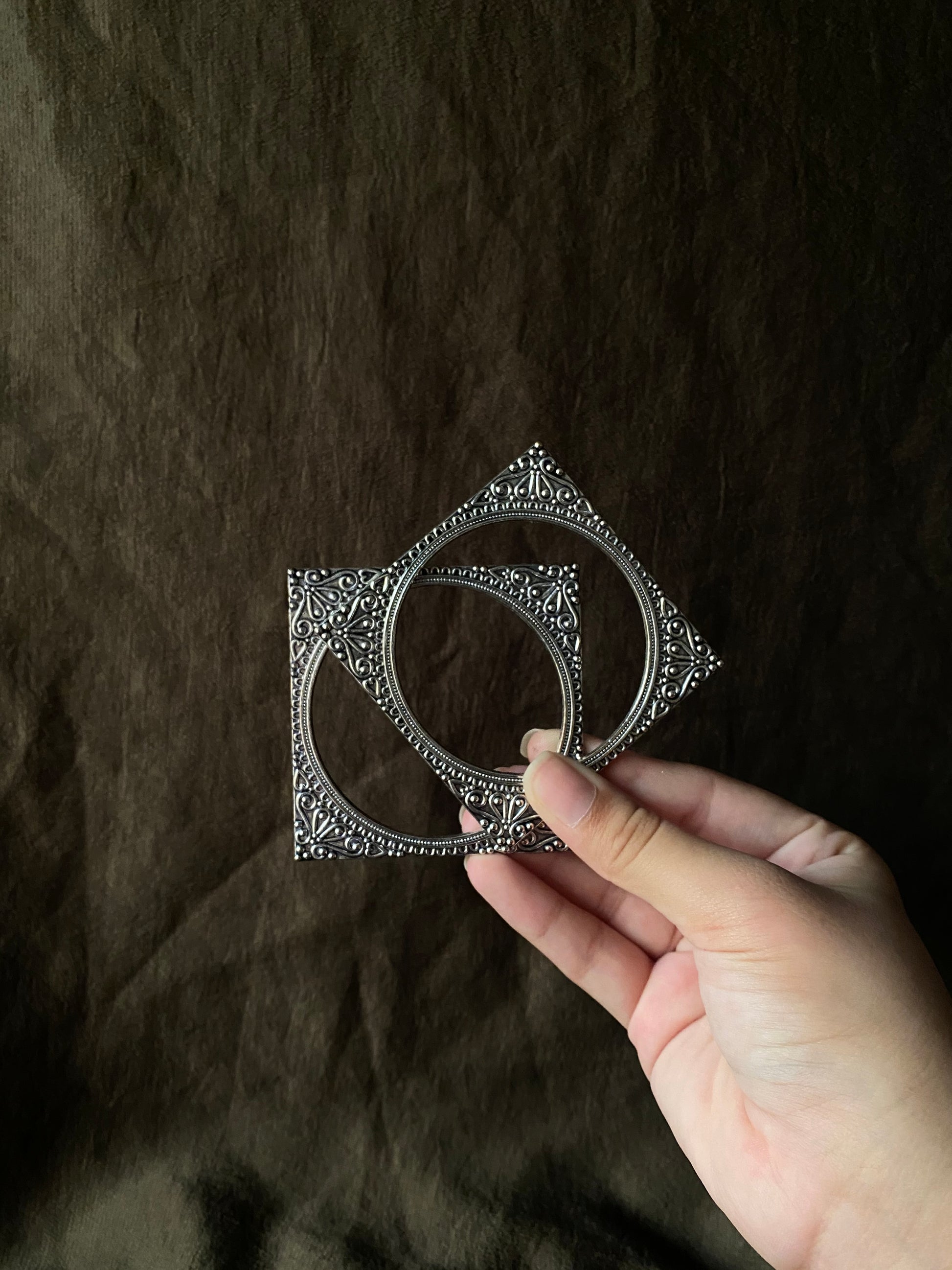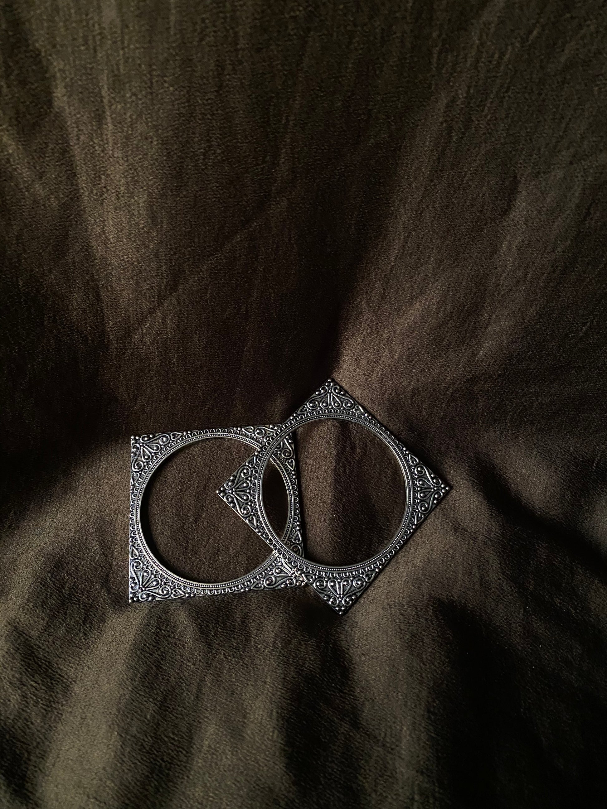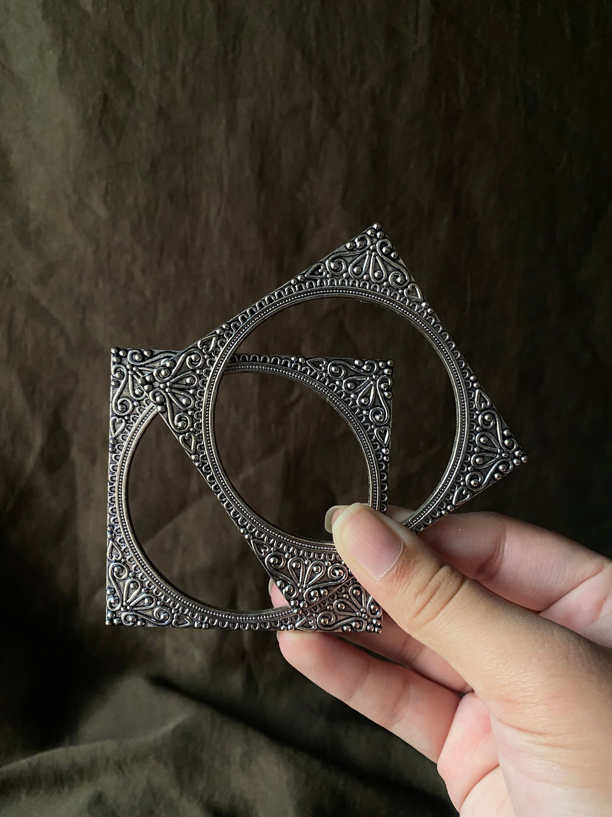 These pair of firm yet almost delicate square shaped bangles from sophistiquee are perfect for festive occasions and adding a traditional ethnic statement to your look. The firm German silver gives these bangles a sturdy feel that remains lightweight on your wrist, allowing you to go about your day in comfort without compromising on style. Slip them on and instantly elevate your next festival celebration or dinner party outfit from ordinary to extraordinary with these beautiful arm adornments that shine with timeless appeal.