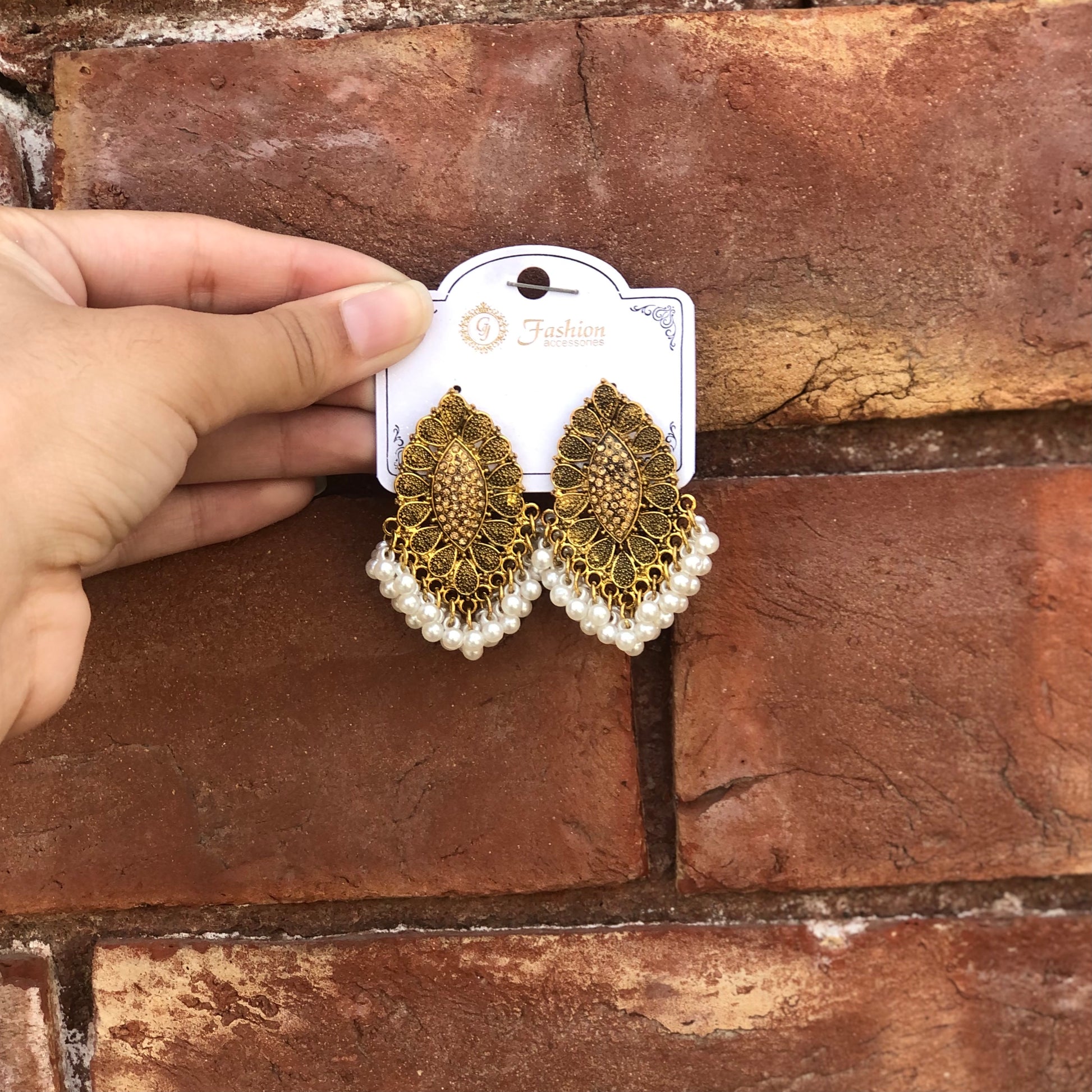 Make a statement with these Traditional Earrings. From sophistiquee, these earrings come in a golden and silver hue. Exquisitely detailed with a pearly finish, they instantly add an ethnic touch to traditional wear. Make them the cherry on top of your look the next time you attend wedding festivities or another special occasion and turn heads with your timelessly classic style. They function as both a classic statement piece and an eye-catching accessory - wear them anywhere to make sure all eyes are on you!