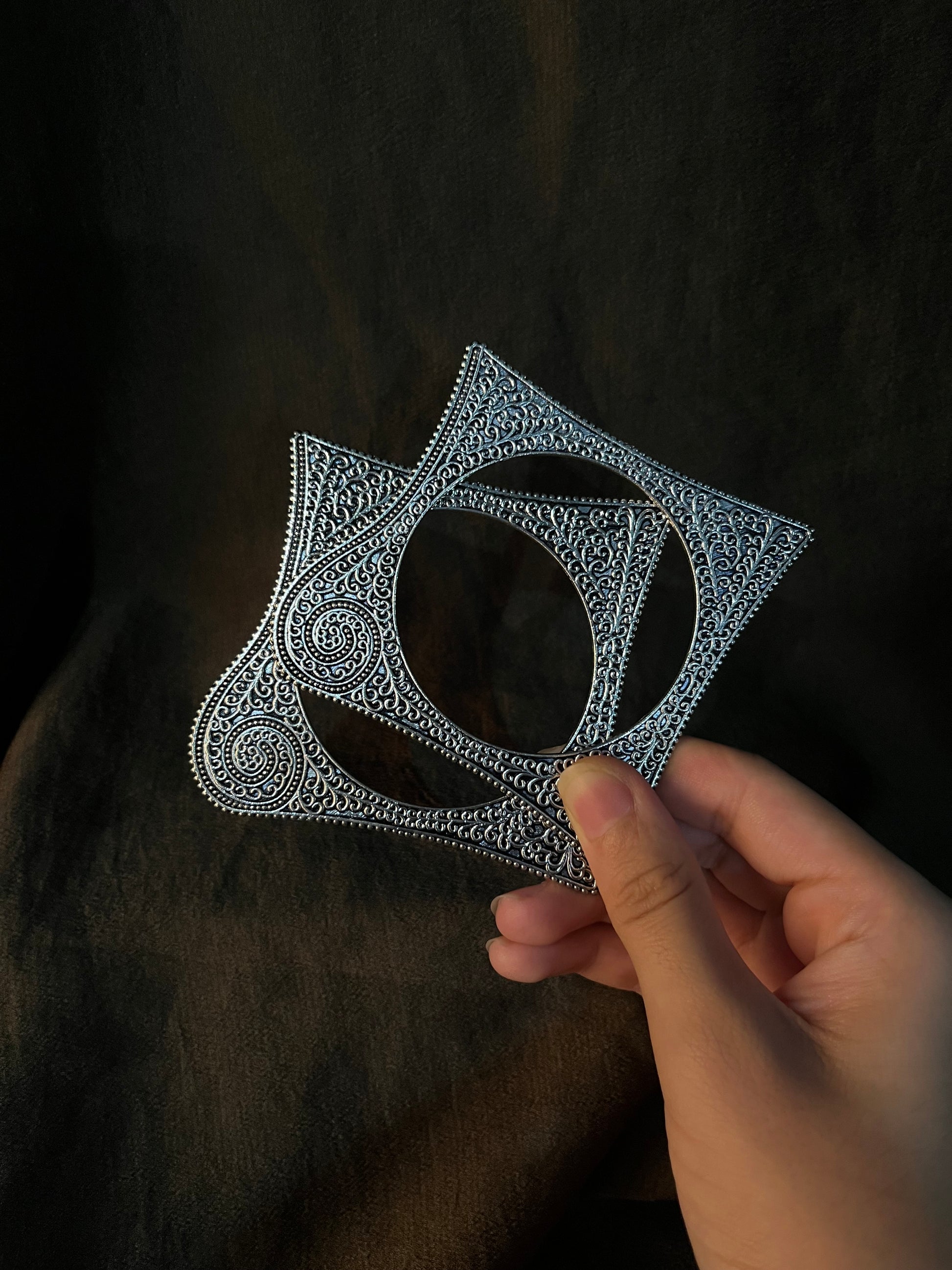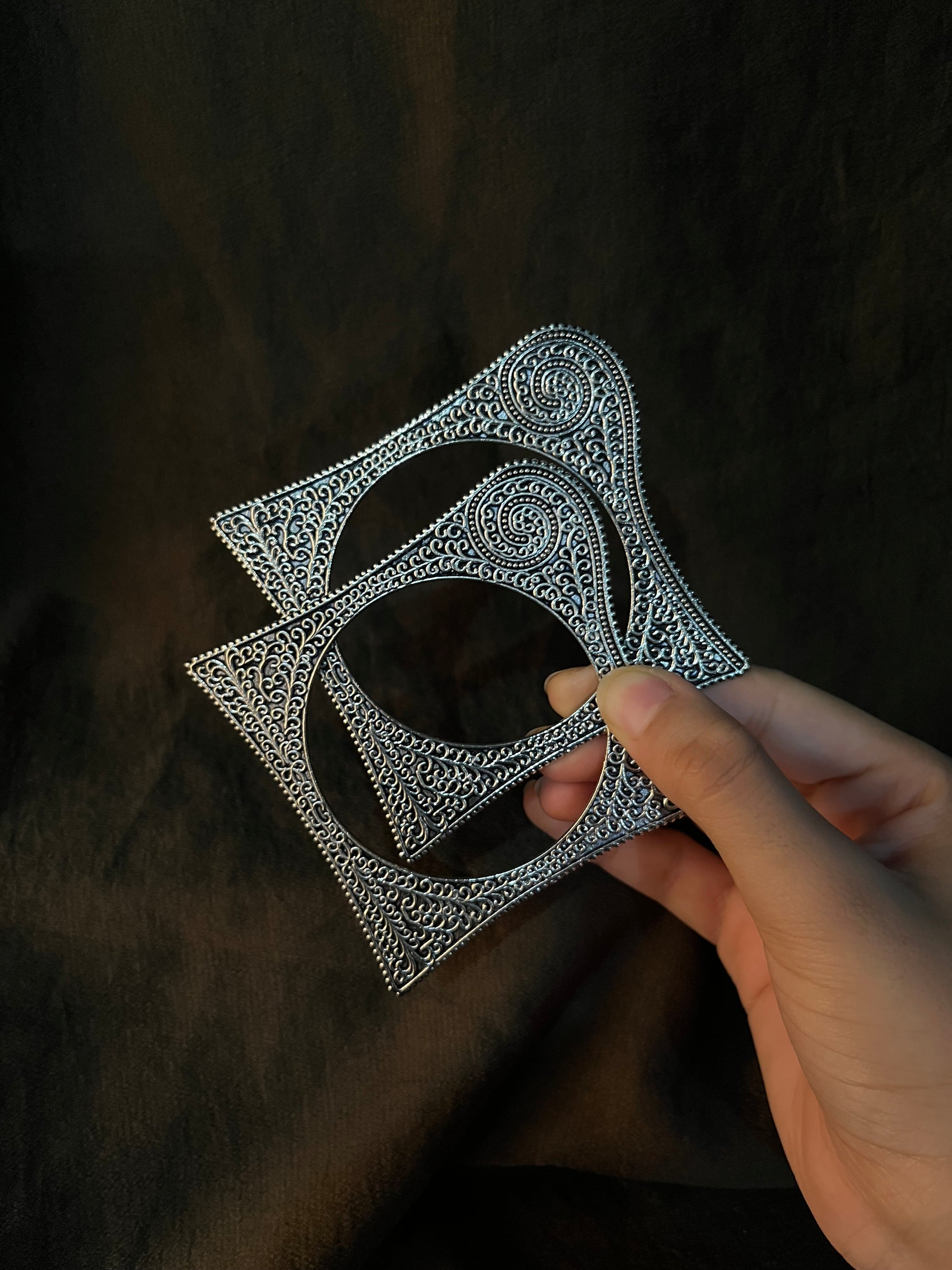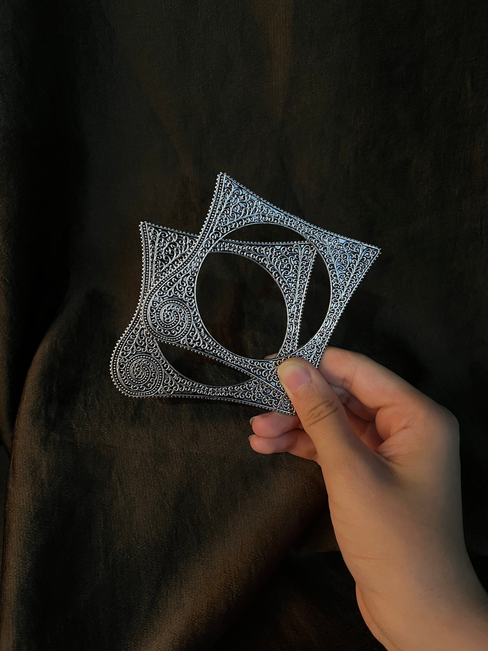 These pair of firm yet almost delicate troubled square shaped bangles from sophistiquee are perfect for festive occasions and adding a traditional ethnic statement to your look. The firm German silver gives these bangles a sturdy feel that remains lightweight on your wrist, allowing you to go about your day in comfort without compromising on style. Slip them on and instantly elevate your next festival celebration or dinner party outfit from ordinary to extraordinary with these beautiful arm adornments that shine with timeless appeal.
