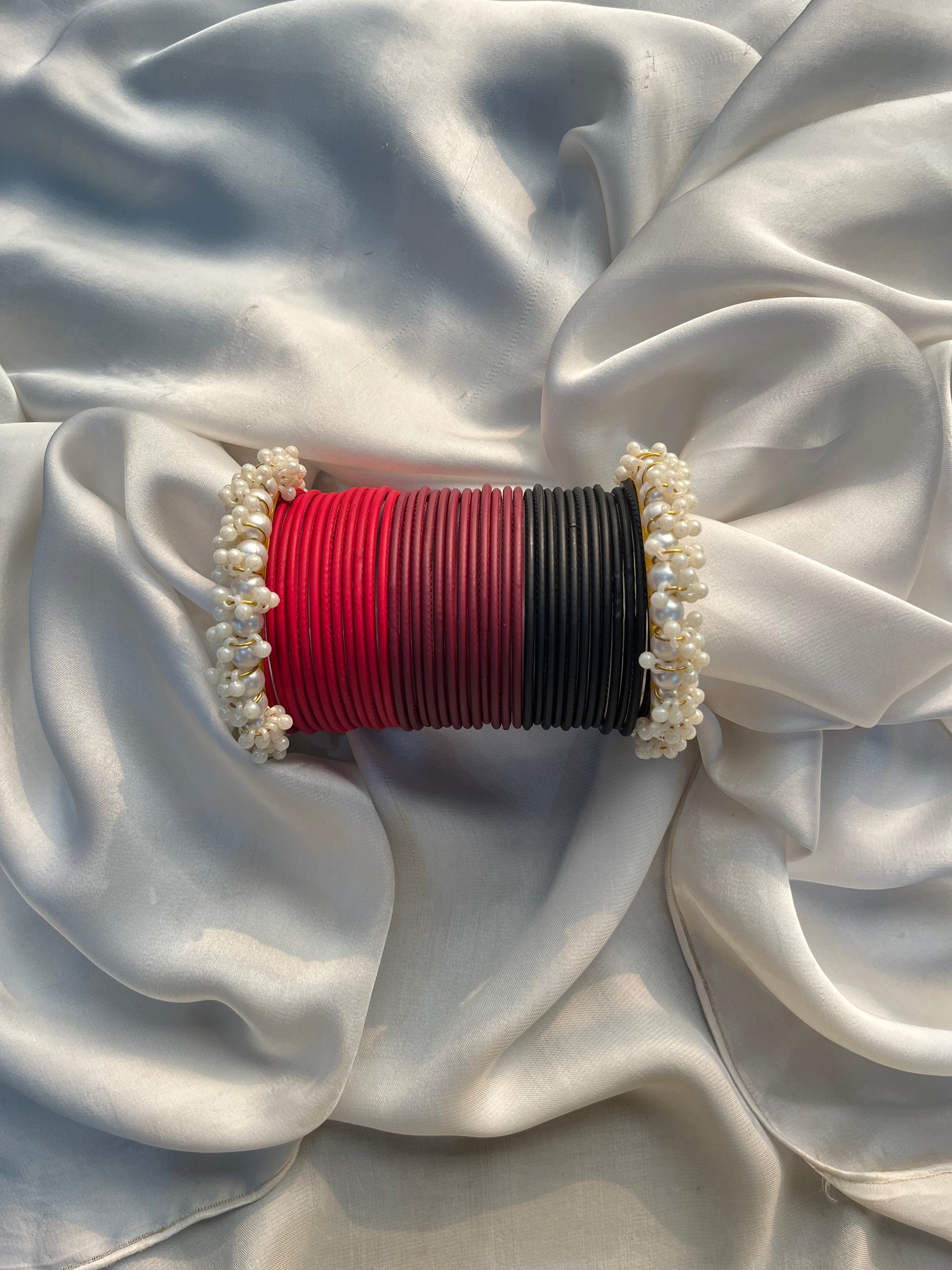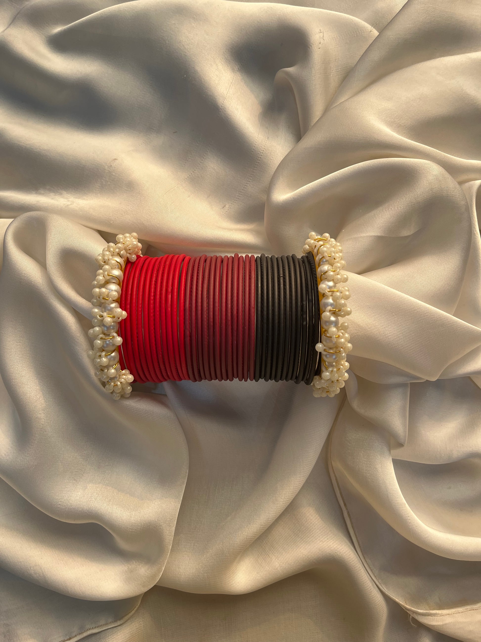 2*8 Black-red bangle set of 3